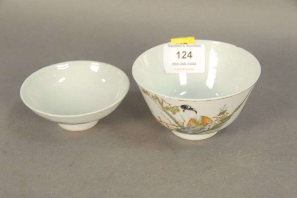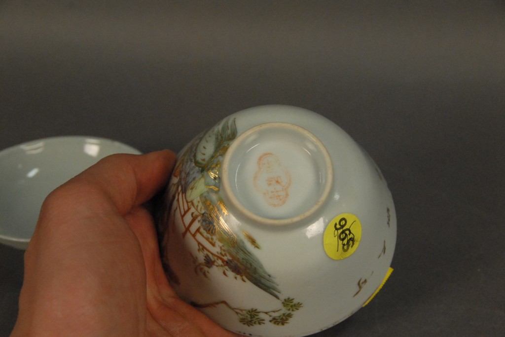 Porcelain guanyin cup with cover along with certificate of antiquity from 1977. dia 4