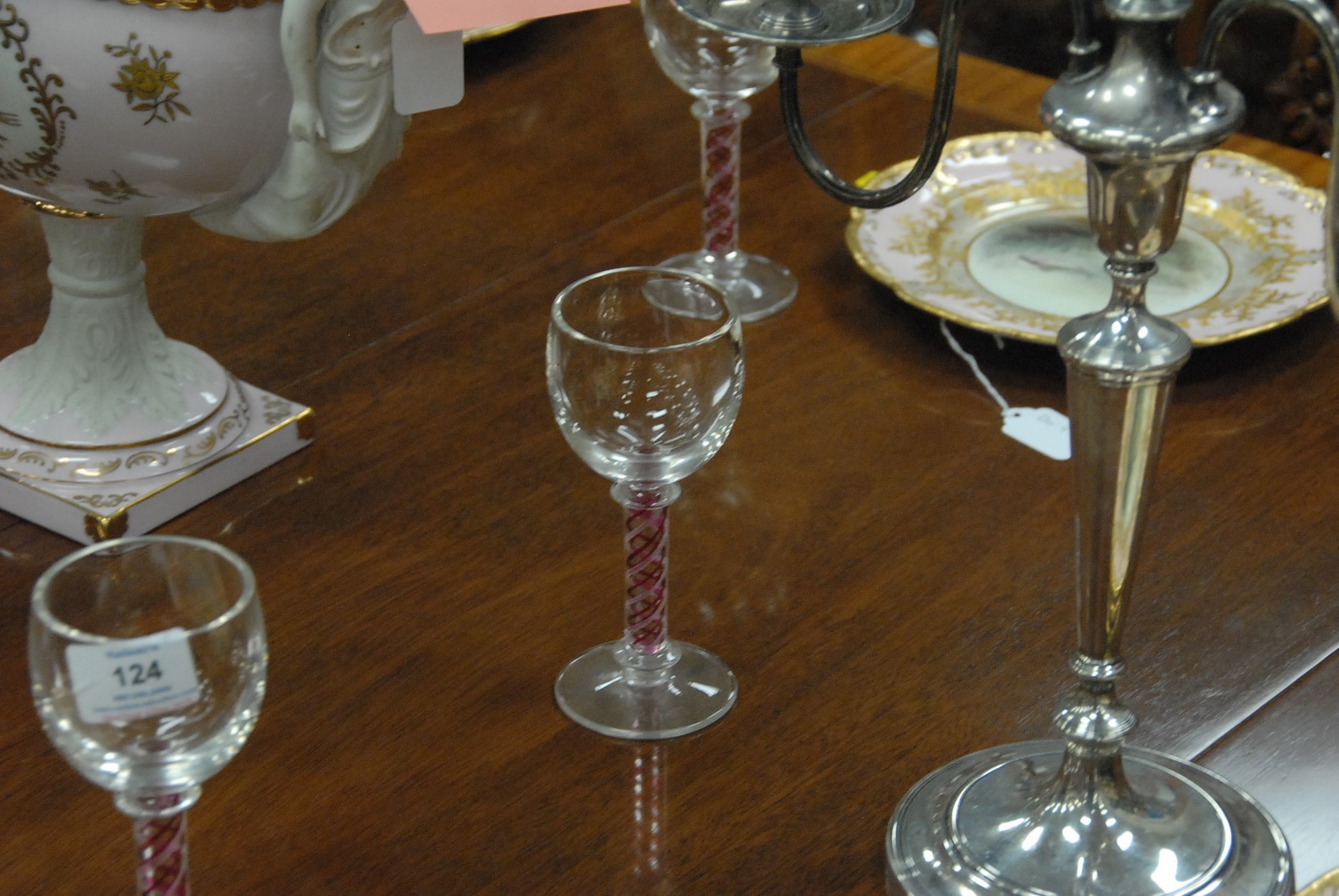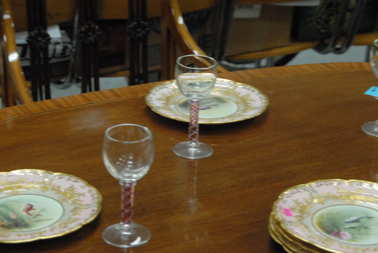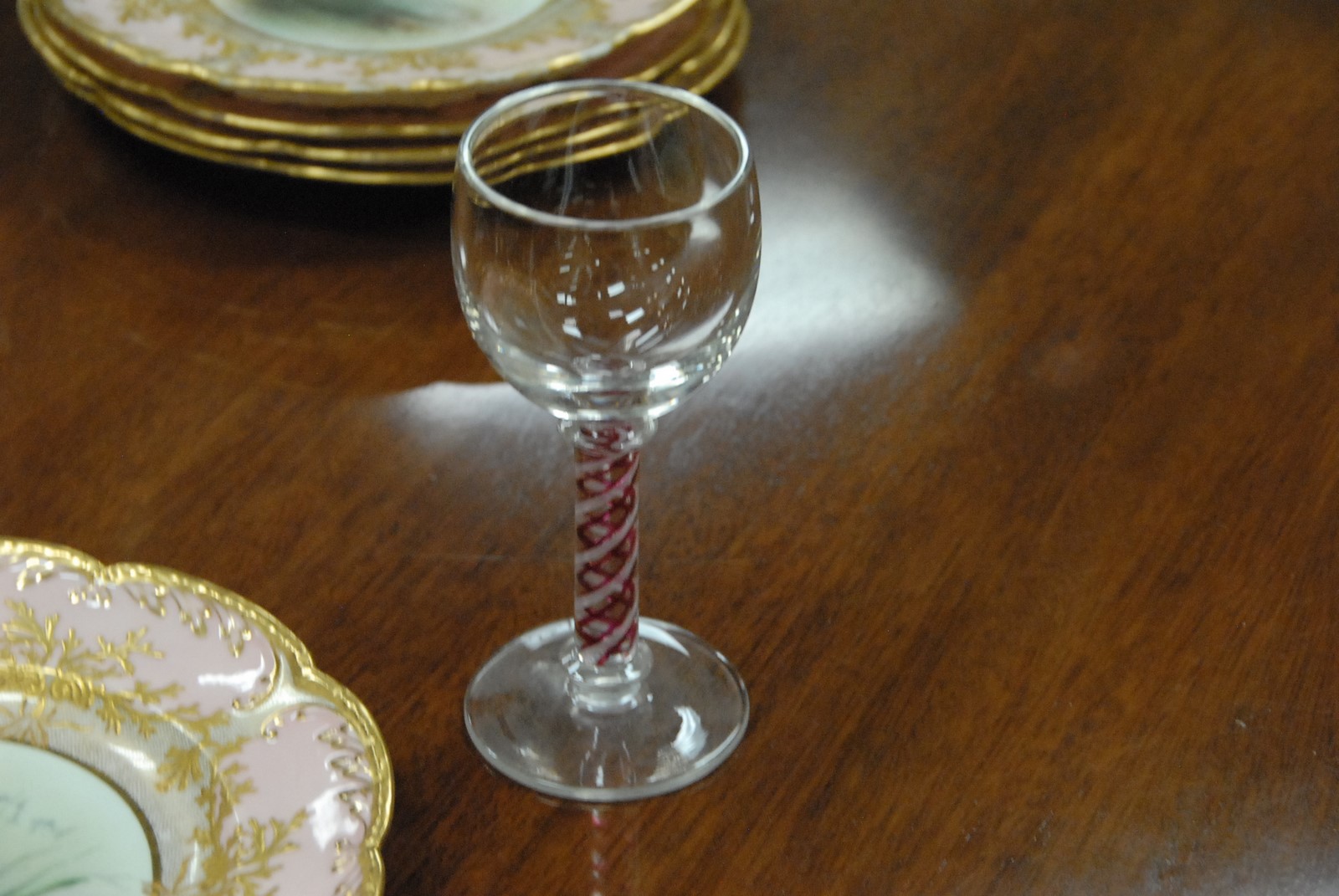 Set of eleven crystal wines, each with red air twist stems. ht. 6 1/2 in.