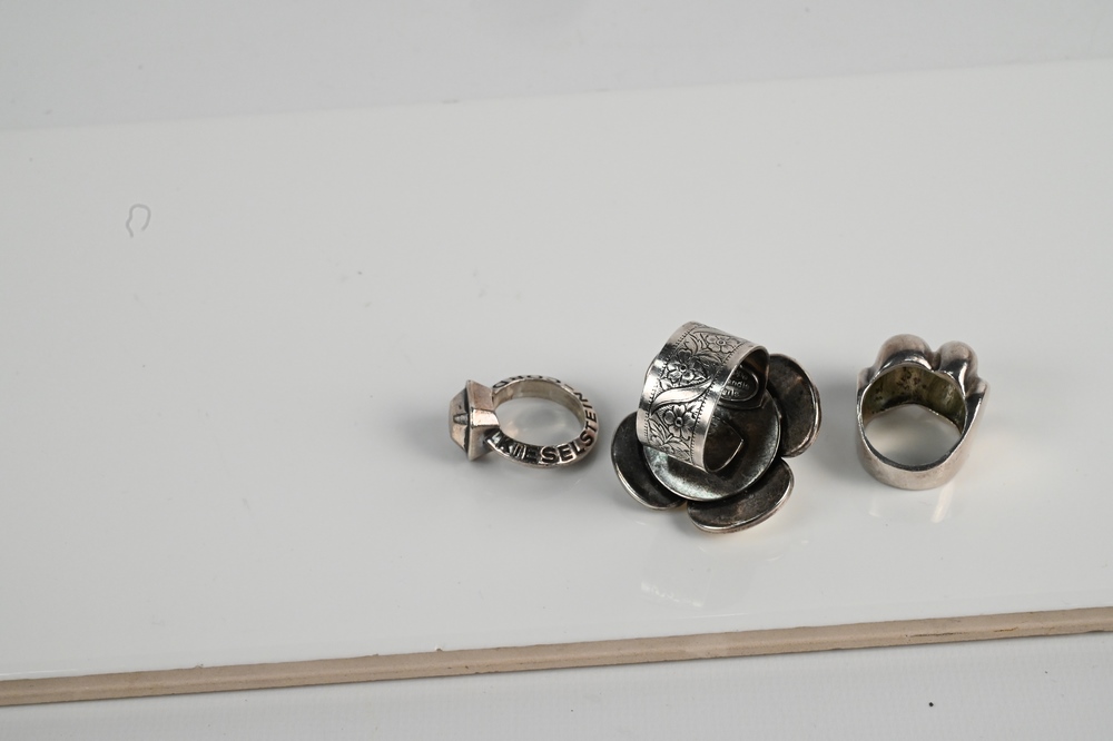 Lot 124: Three Silver Rings, to include Philippe Ferrandis, Paris ring, along with two Barry Kieselstein-Cord sterling rings.
