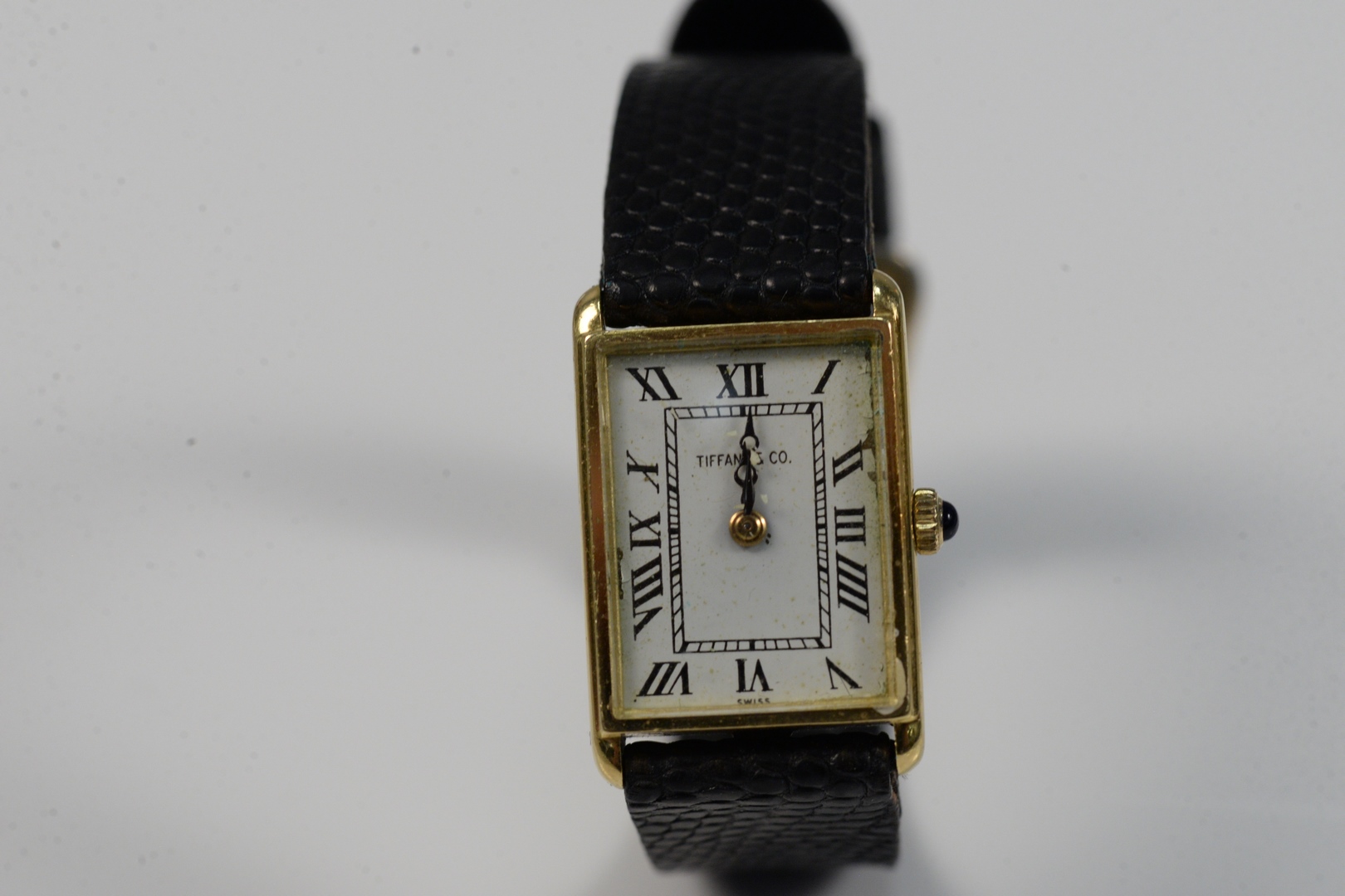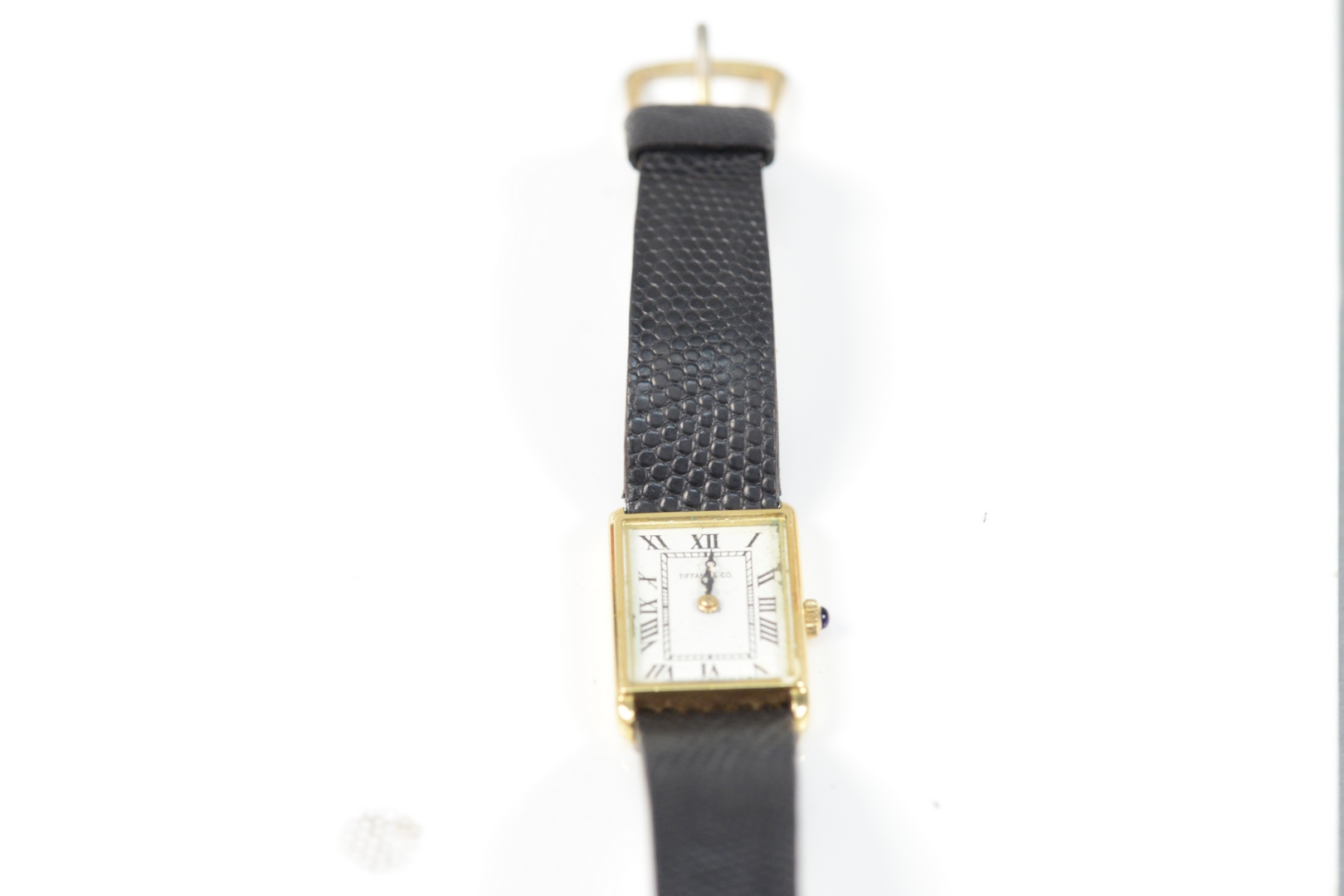 Tiffany & Company 18 Karat Gold Tank Watch with leather band 18.4 millimeters