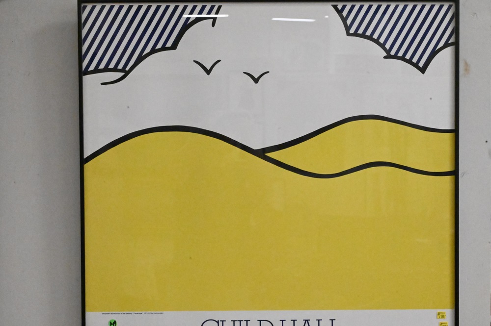 After Roy Lichtenstein (American 1923 – 1997), screenprint poster “Guild Hall, East Hampton”, 31 1/2″ x 33 1/2″.