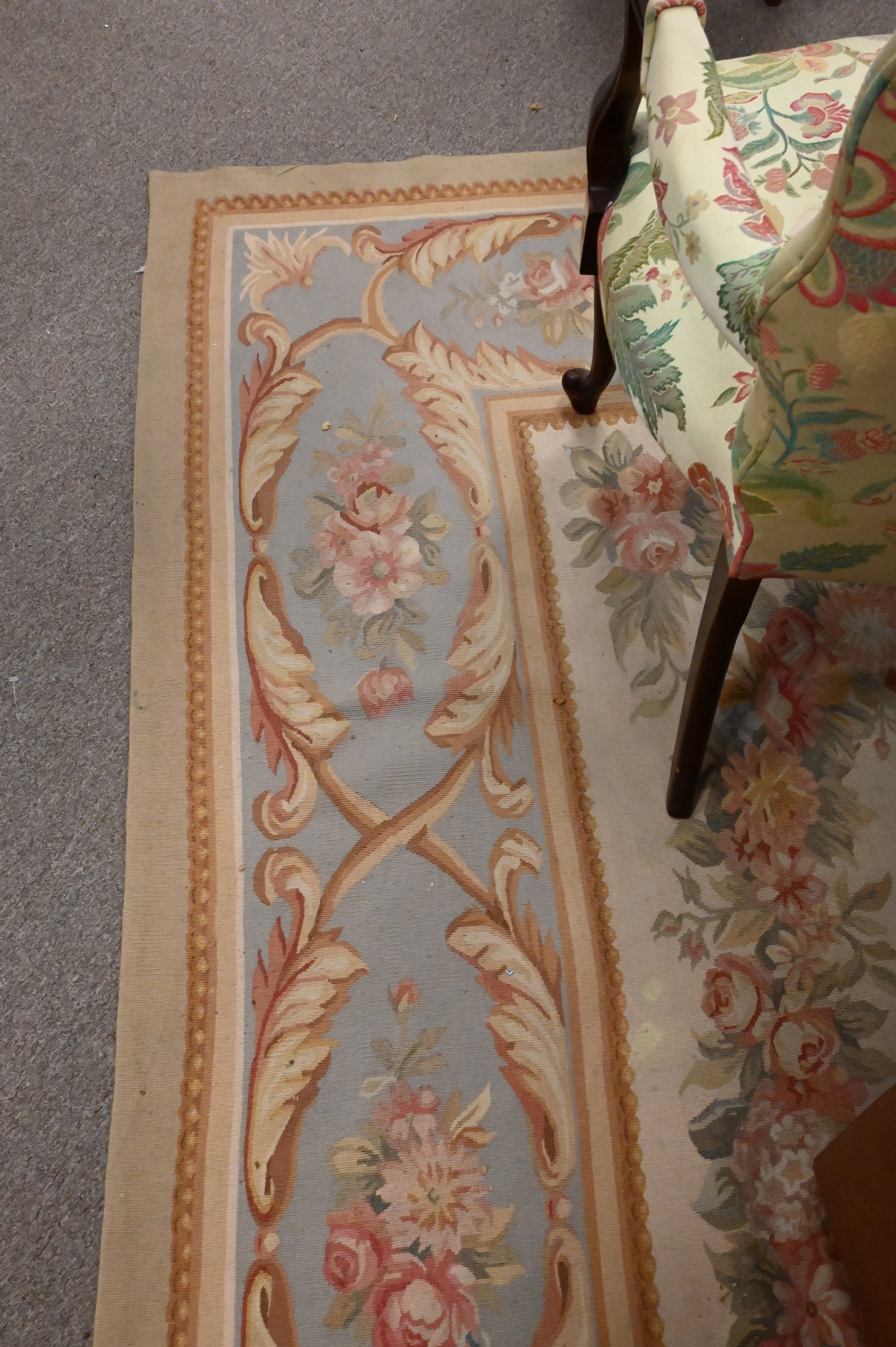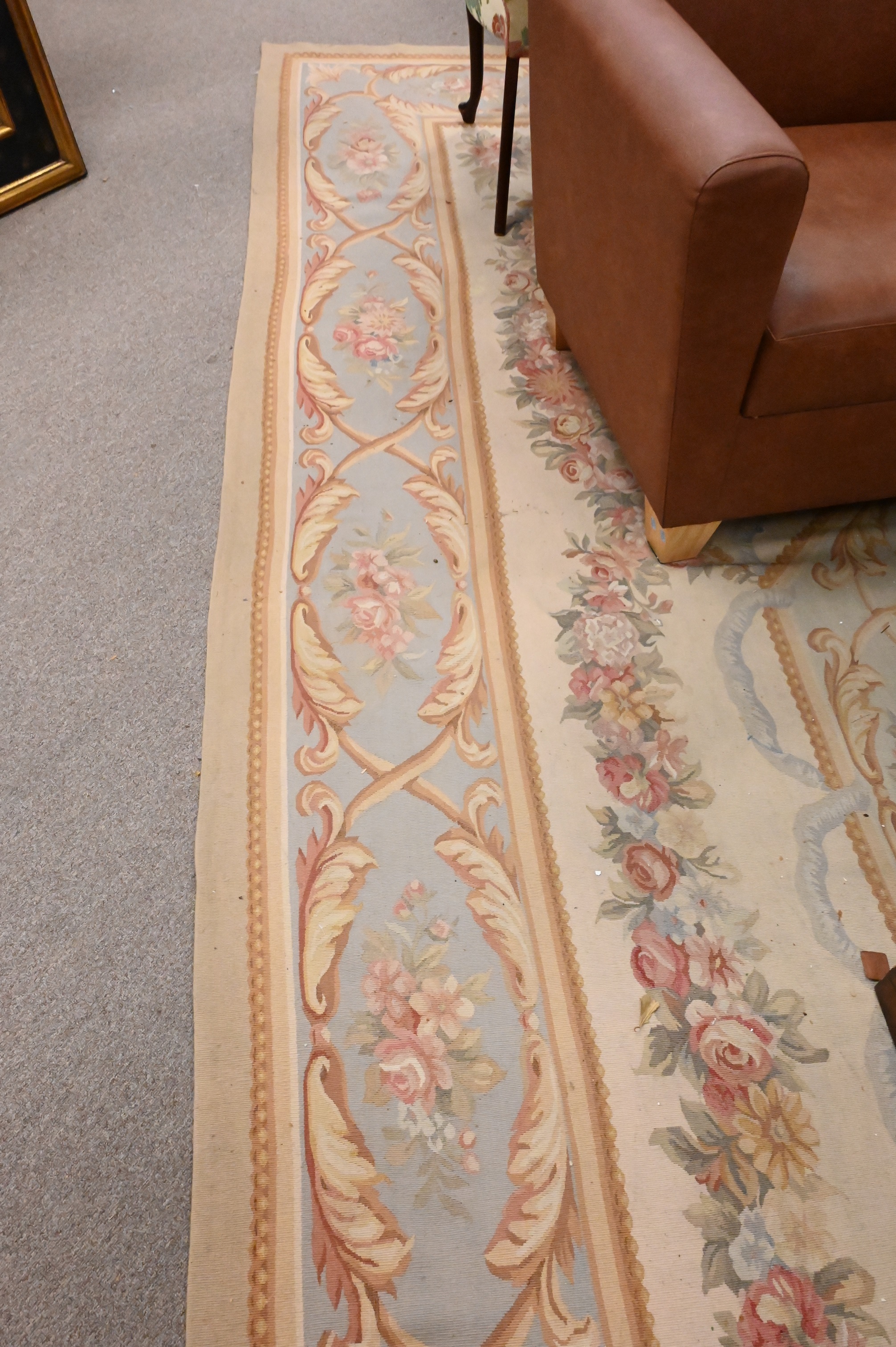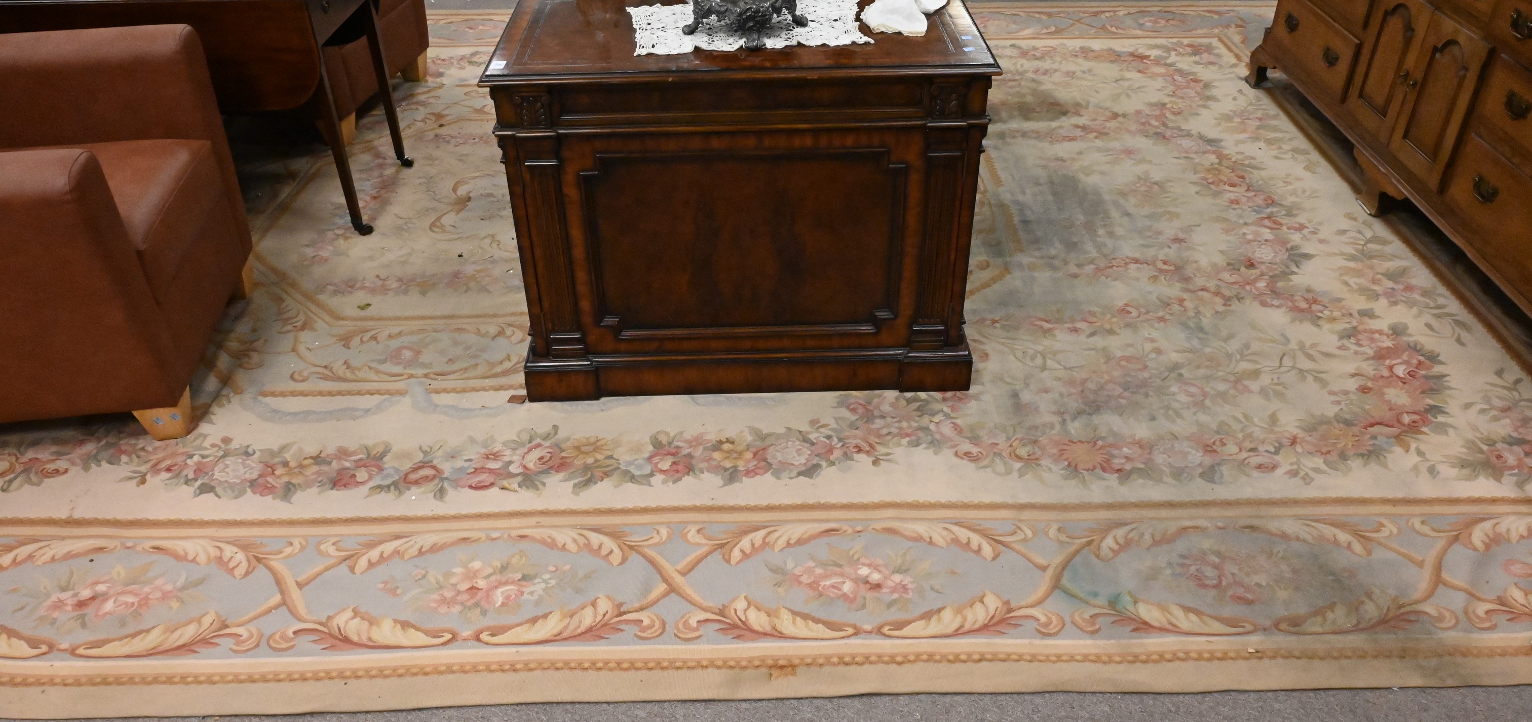 Aubusson Style Room Size Rug, 11′ 8″ x 18′, large area with staining (2′ x 8′ area)