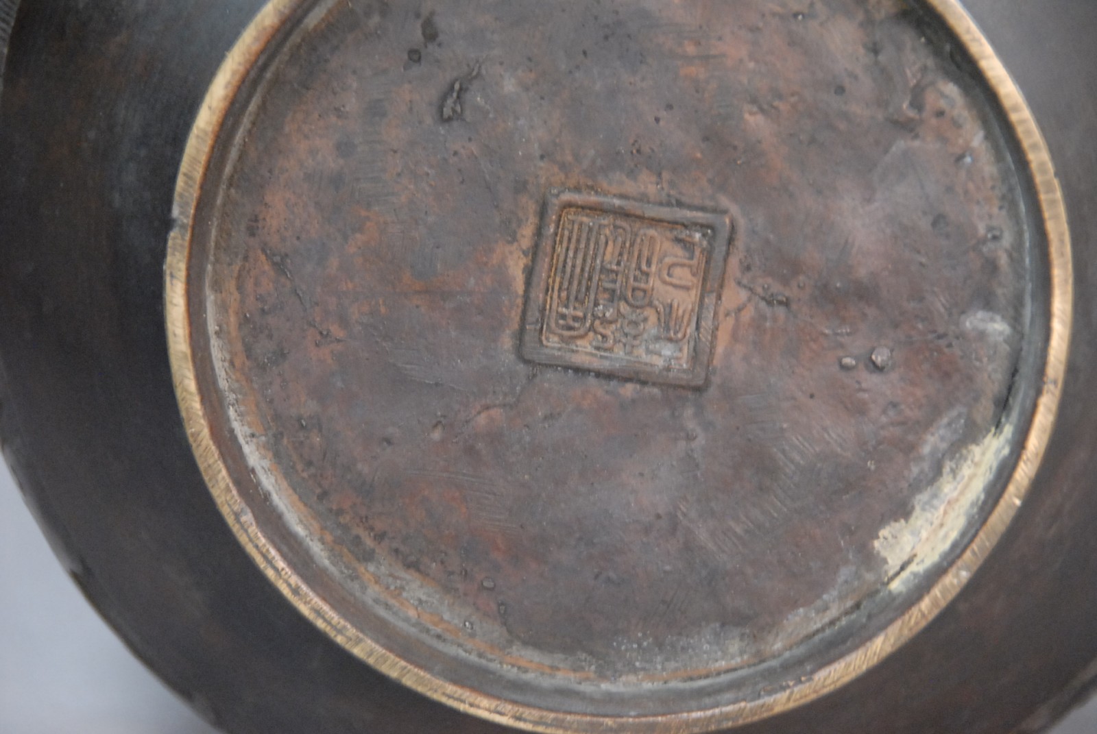 Chinese bronze vase in archaic hu form, seal mark, possibly 18th century.