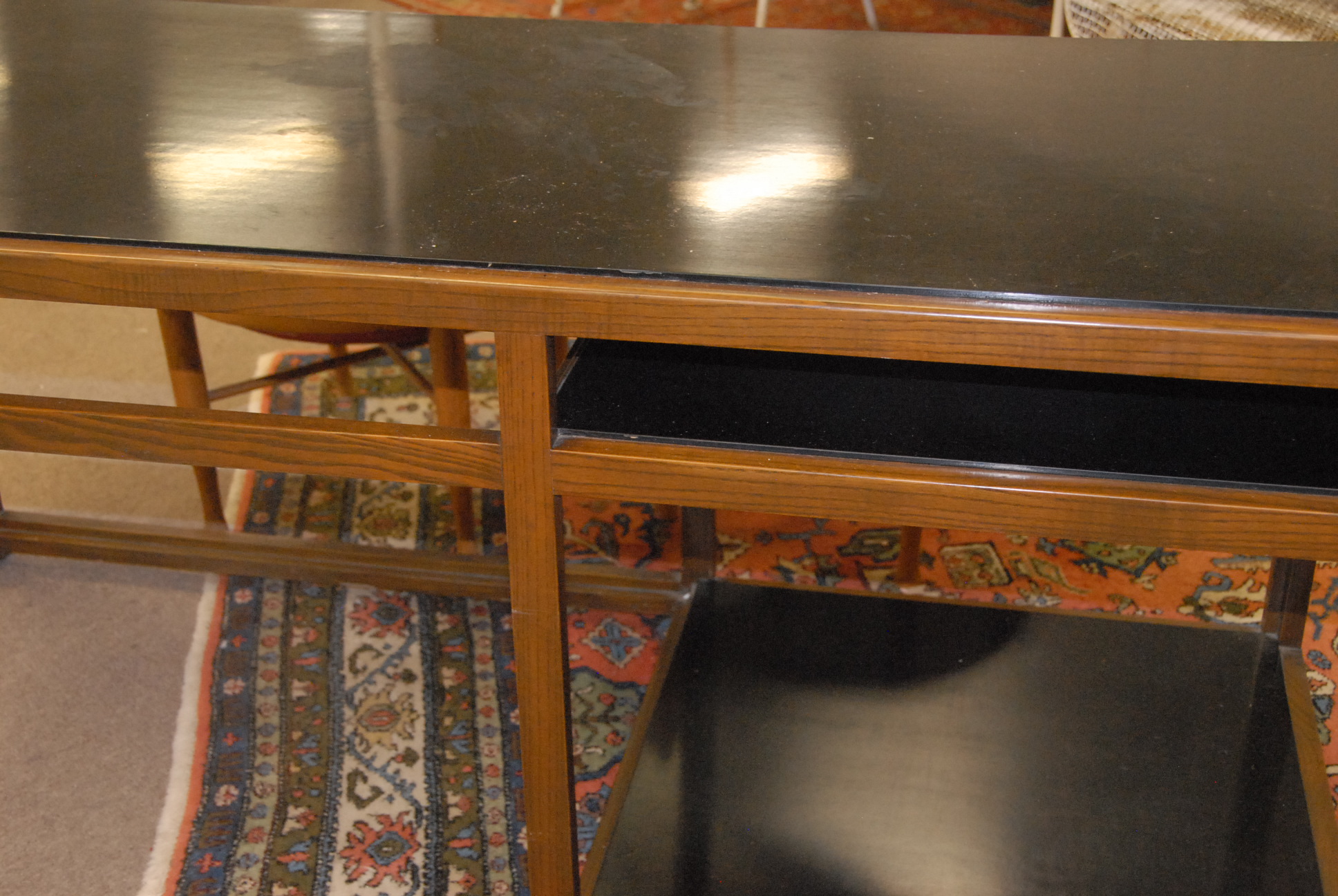Edward Wormley for Dunbar console table with an ash frame and black Formica shelves, ht. 24, wd. 23, lg. 53 1/2.
