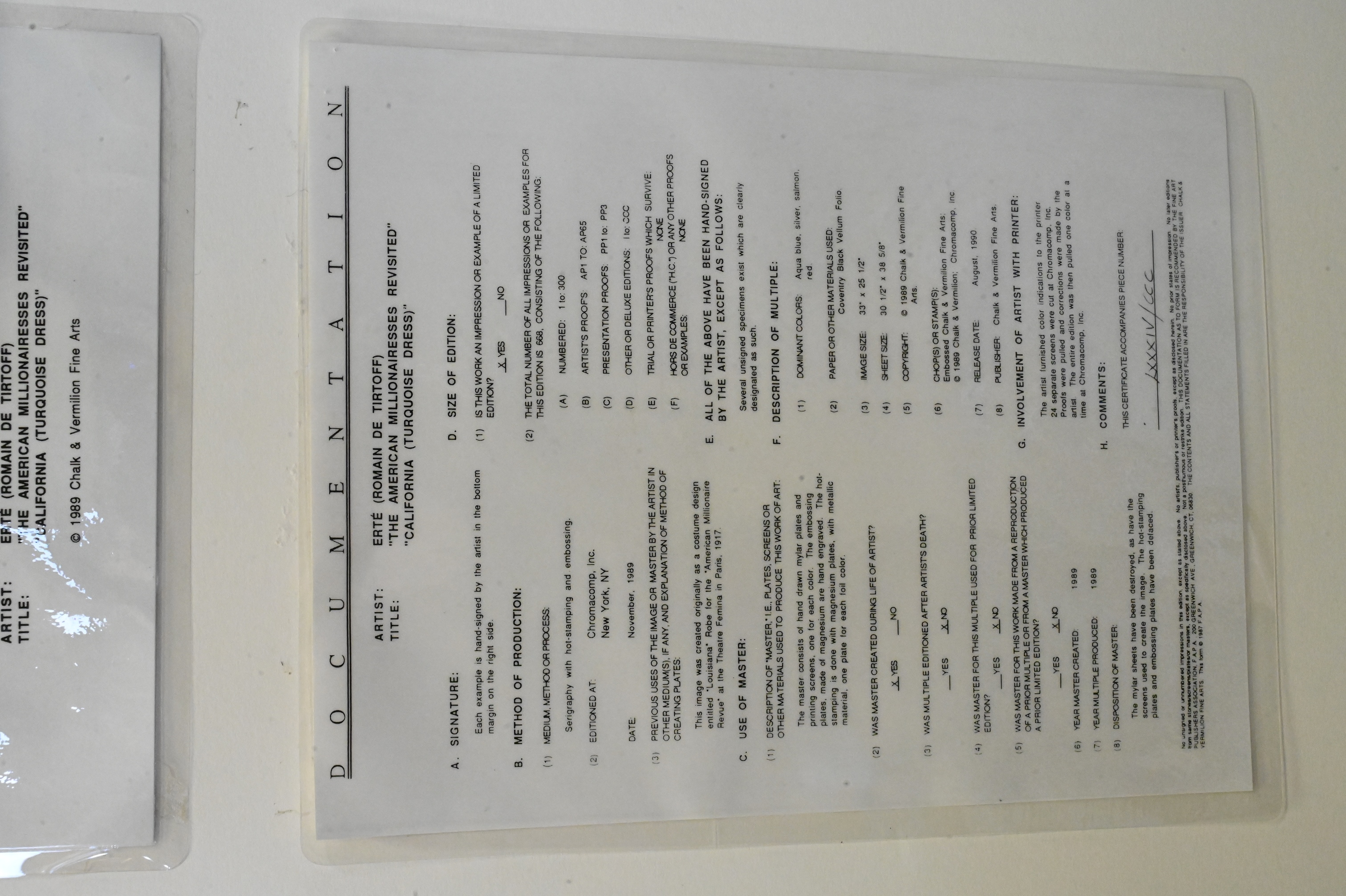 Pencil signed lower right Erte, published by Chromacomp Inc. New York, documentation on verso
