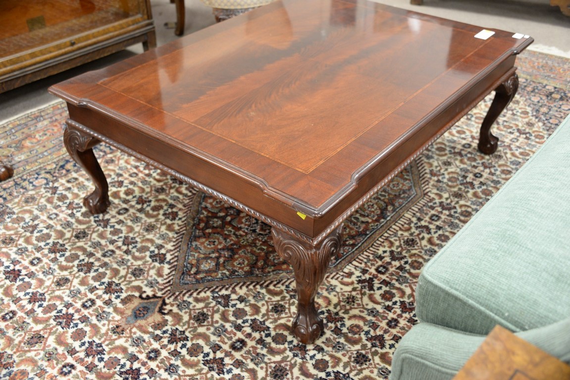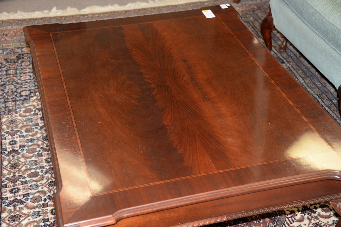 Ethan Allen mahogany coffee table. ht. 17 in. 35 1/2 x 46 1/2