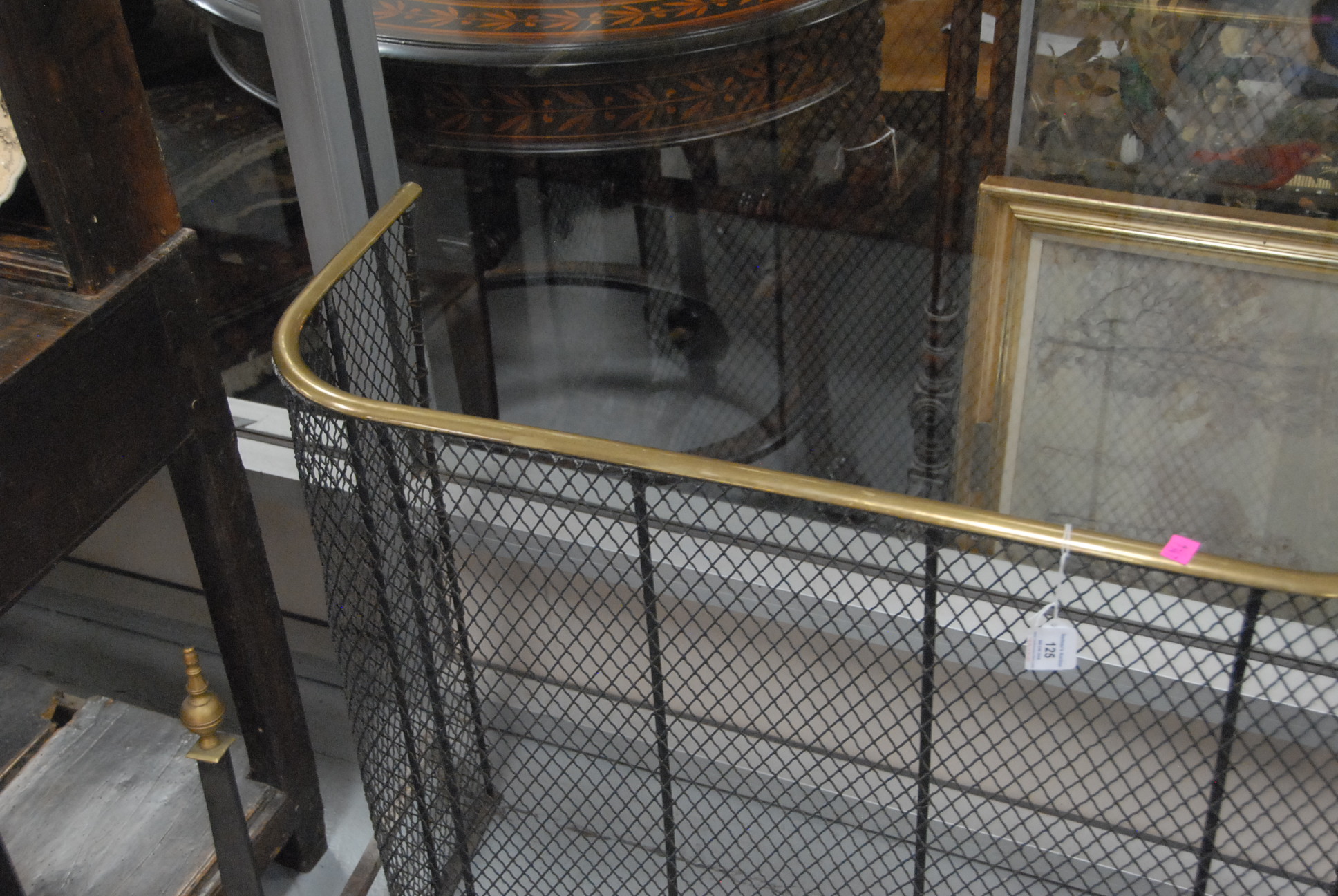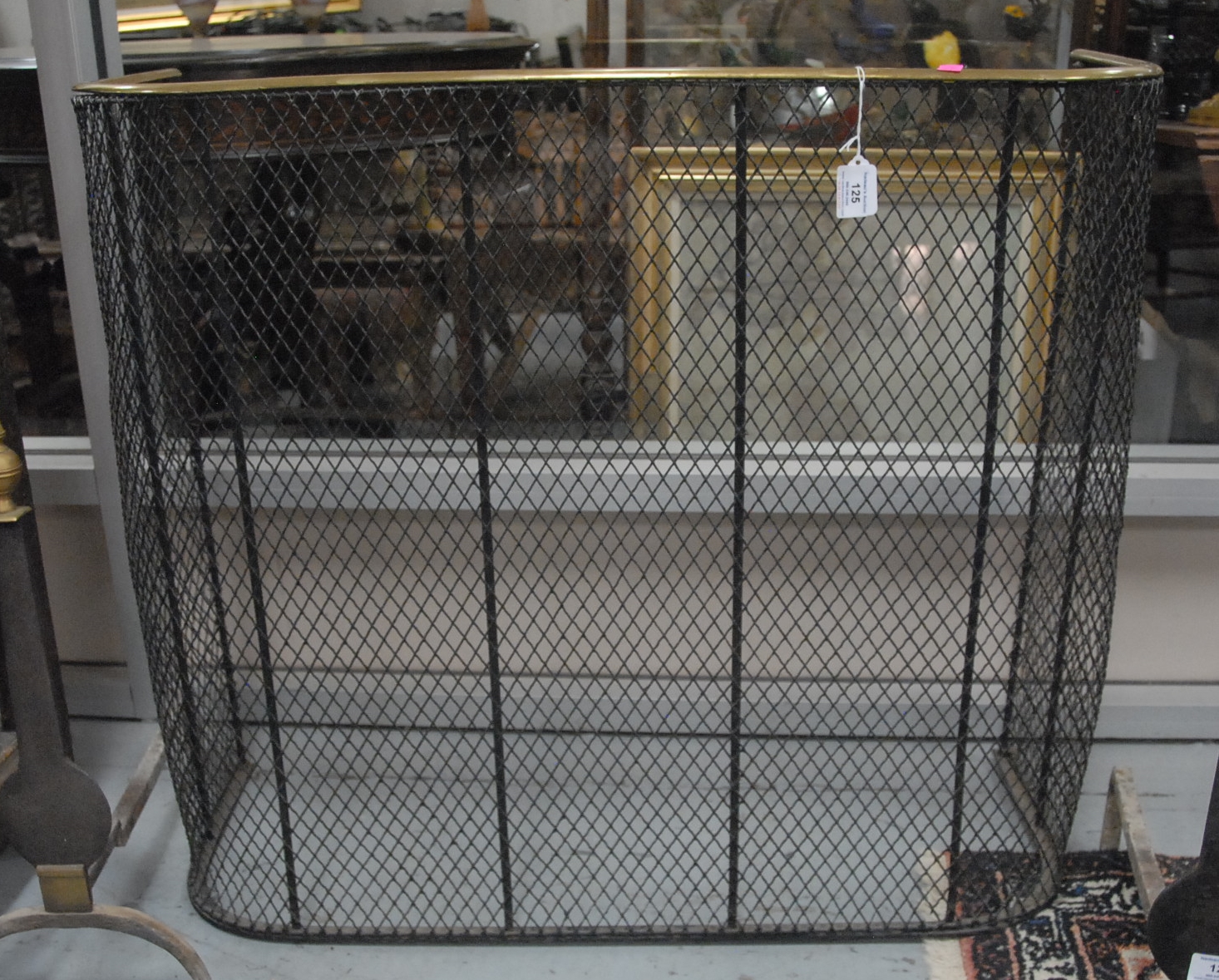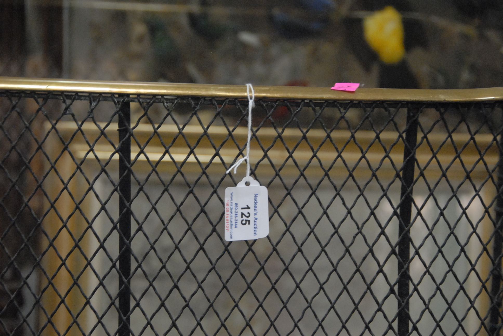 Federal wire fire fender with brass trim. ht. 30 in. wd. 35 in. dp. 12 in.