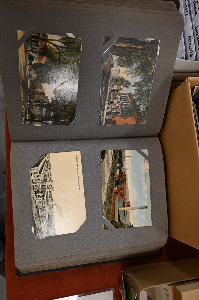 Lot 125: Large Lot of Postcards in Boxes, topics include Connecticut buildings, states, etc.; along with a box of Connecticut Real Picture Postcards (RPPC).