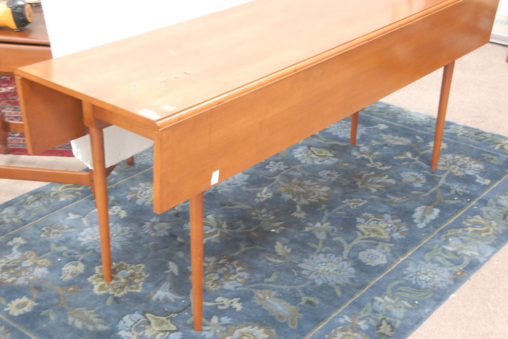 Maple harvest style table signed Shaker Work Shop, ht. 30, lg. 72.