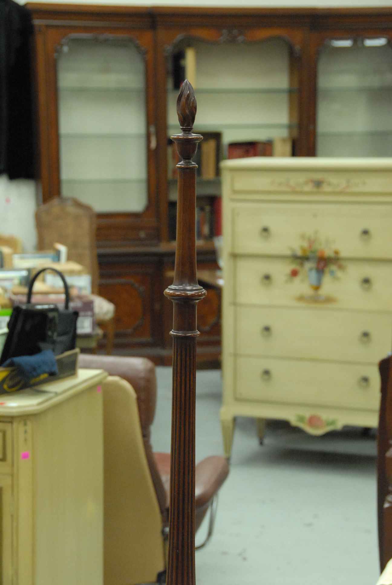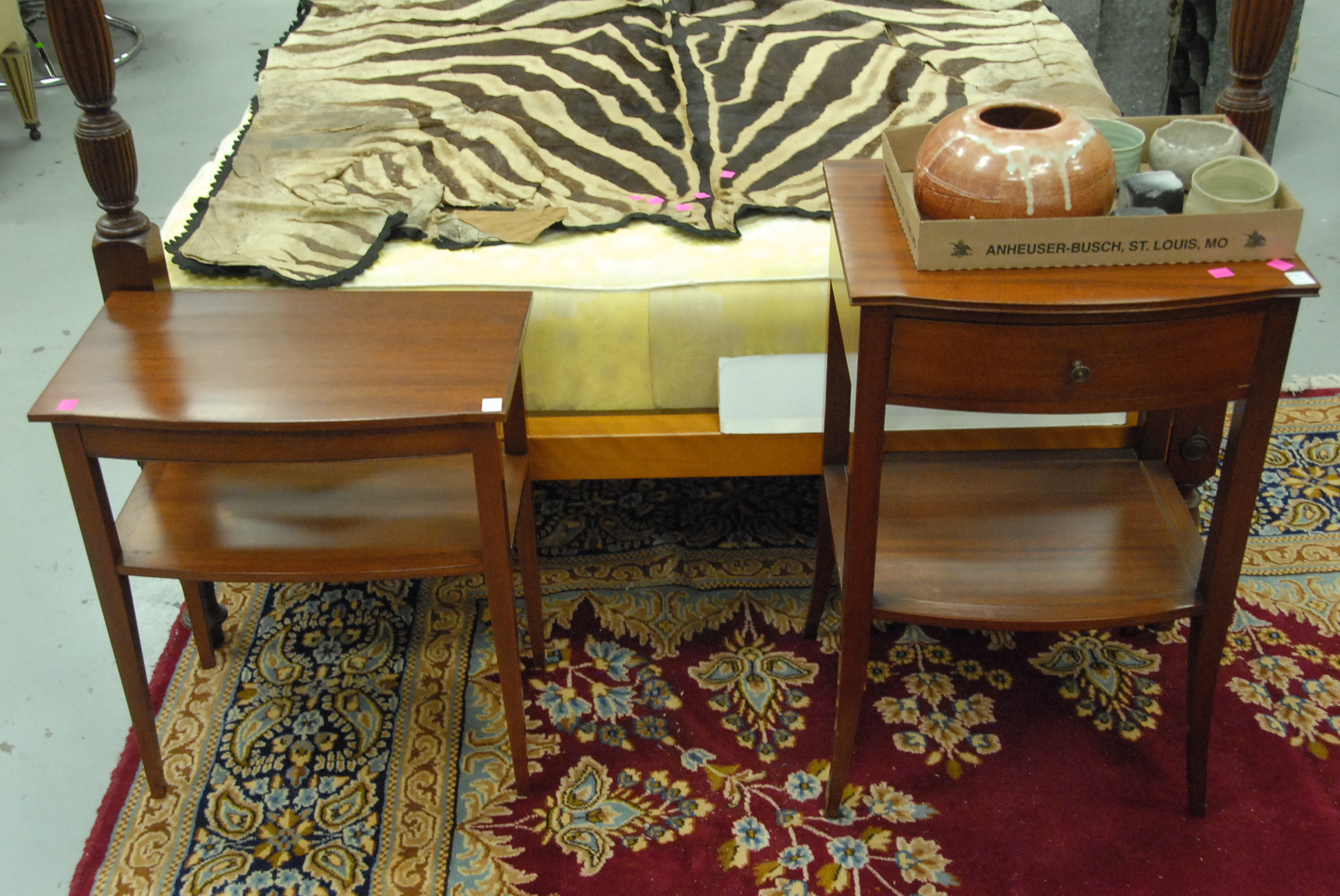 Lot 125: Margolis mahogany double size four post bed with Rabbit Edge custom boxspring and three night tables.