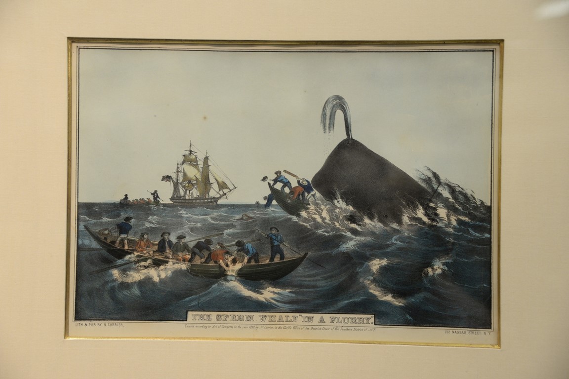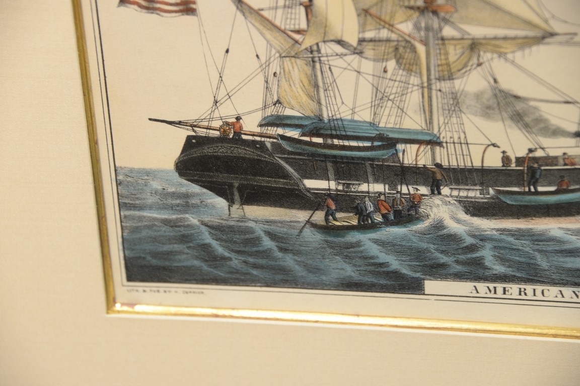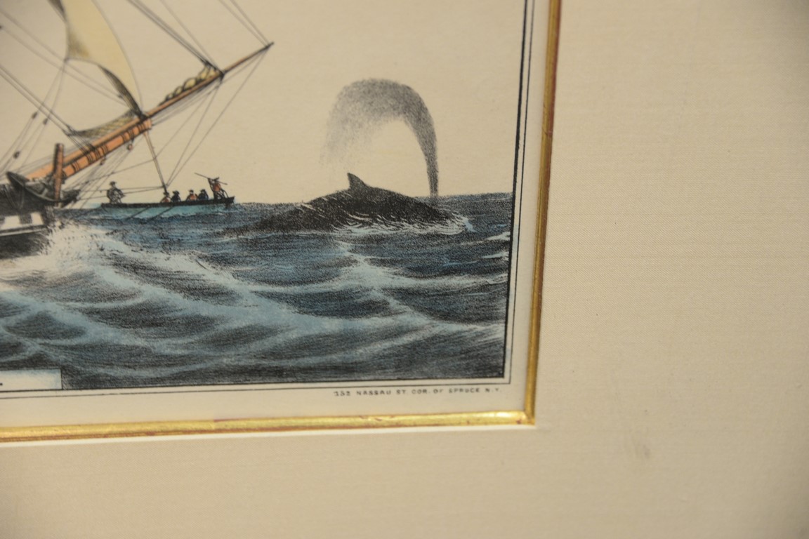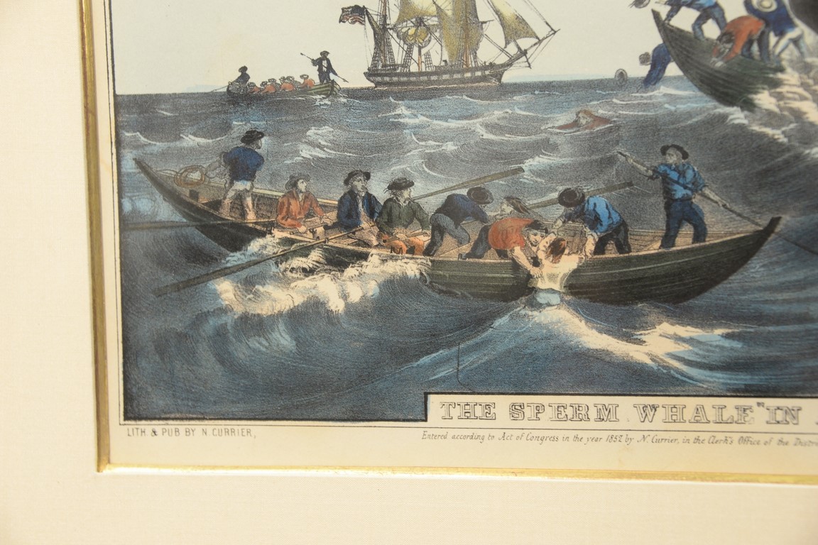 Lot 125: Nathaniel Currier, pair of small portfolio hand colored lithographs, American Whaler and The Sperm Whale In a Flurry, published in…