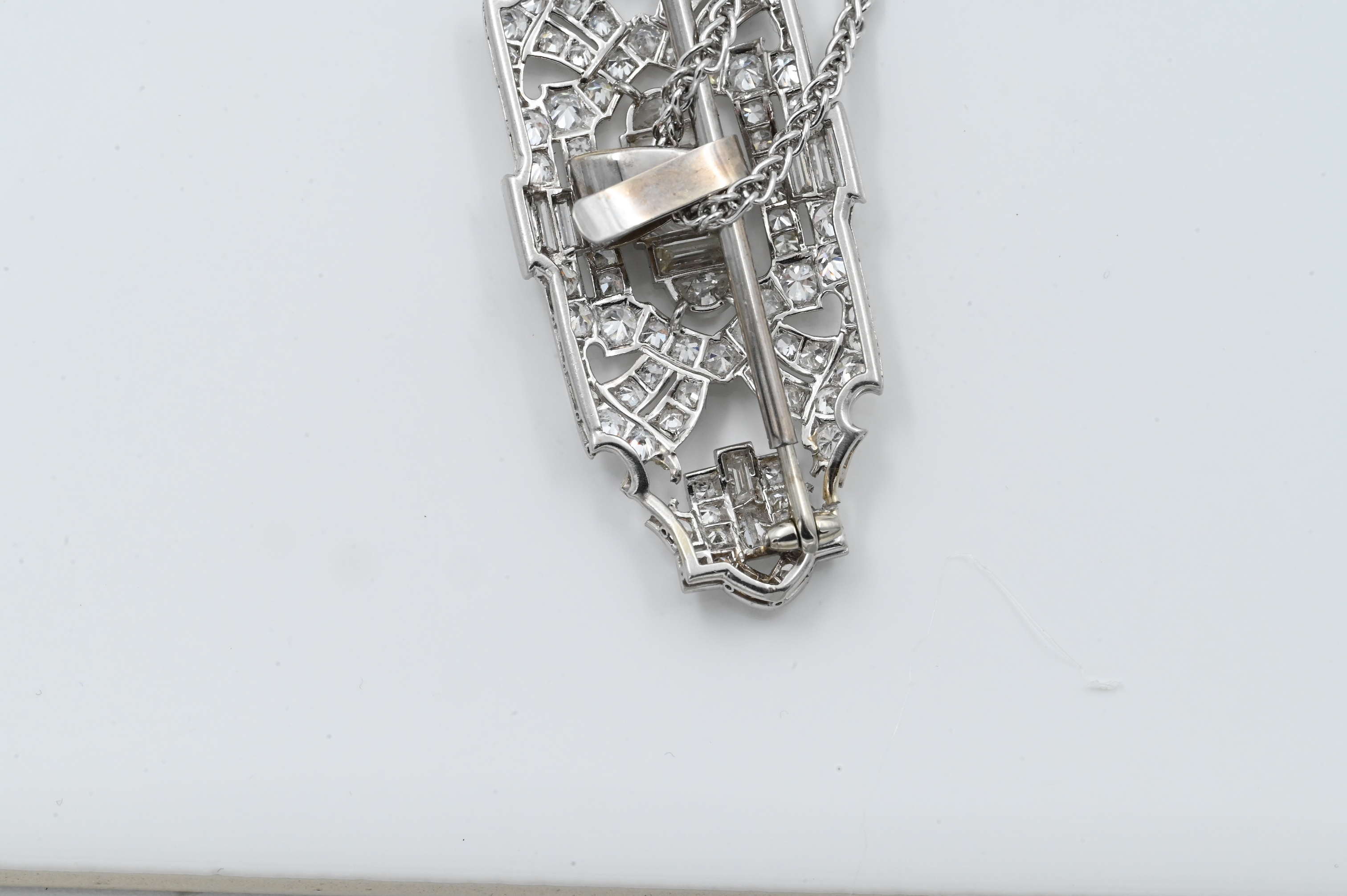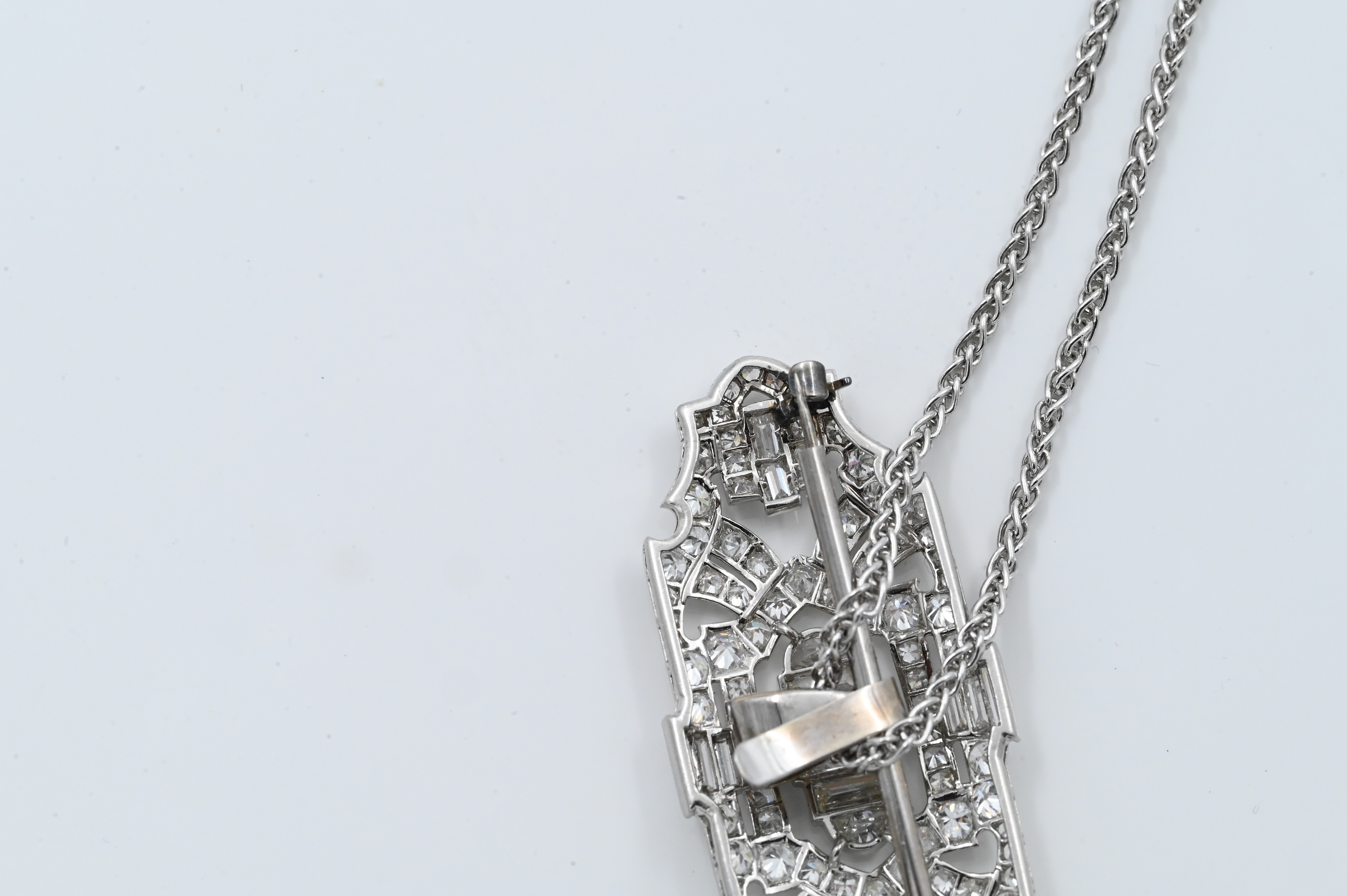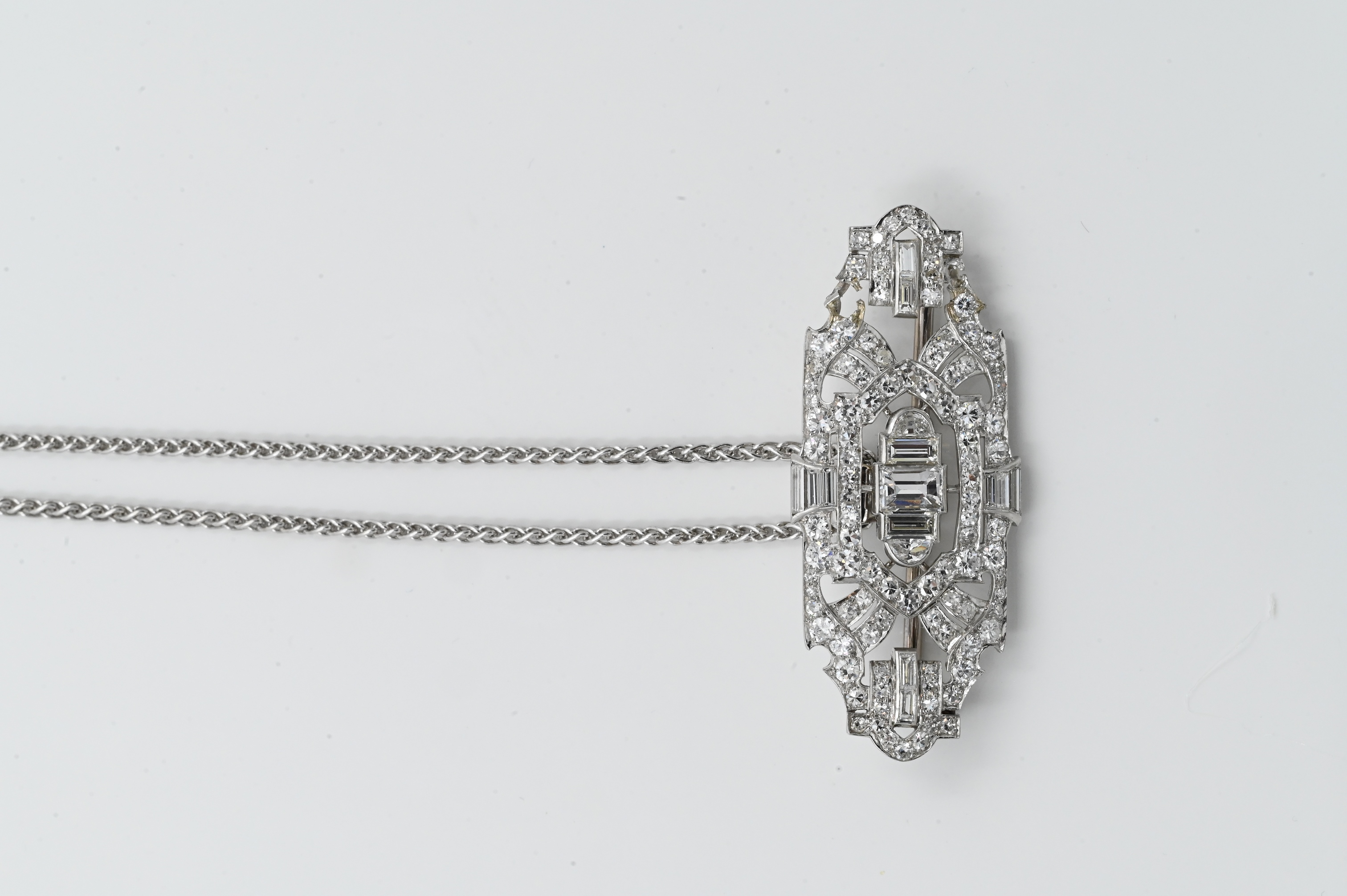 Lot 125: Platinum and Diamond Art Deco Brooch/Pendant