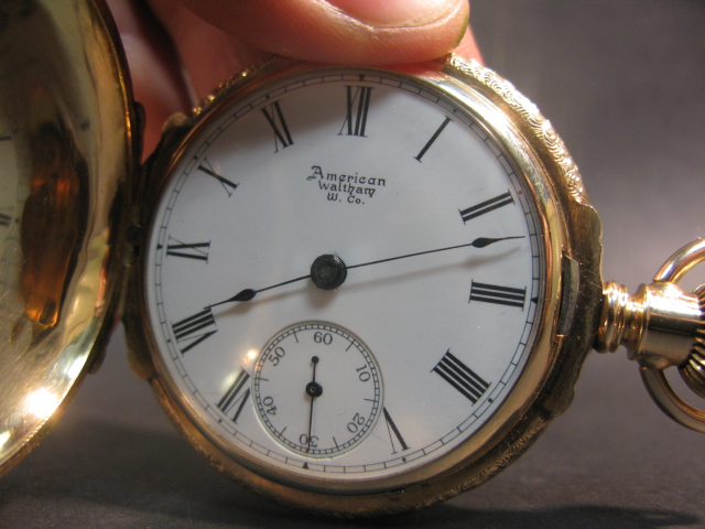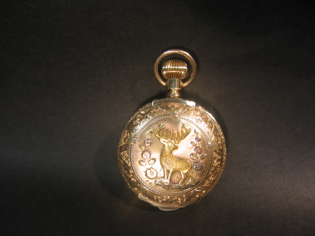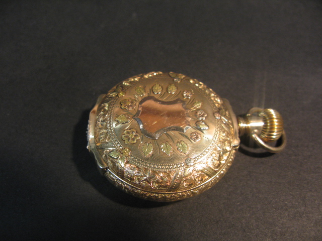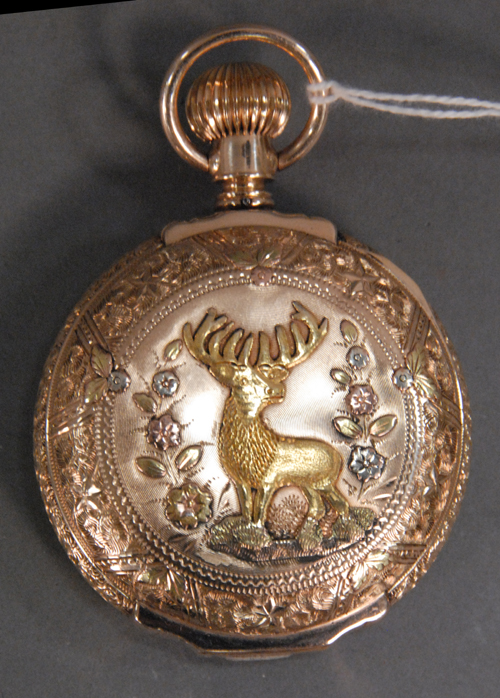 14K multi colored gold closed face pocket watch.