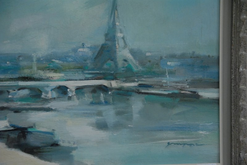 Lot 126: Charles C. Gruppe 1928 Eiffel Tower oil on canvas signed lower right Gruppe, 16 1/2 x 22 1/2.