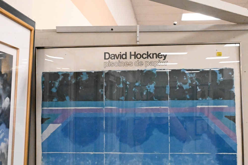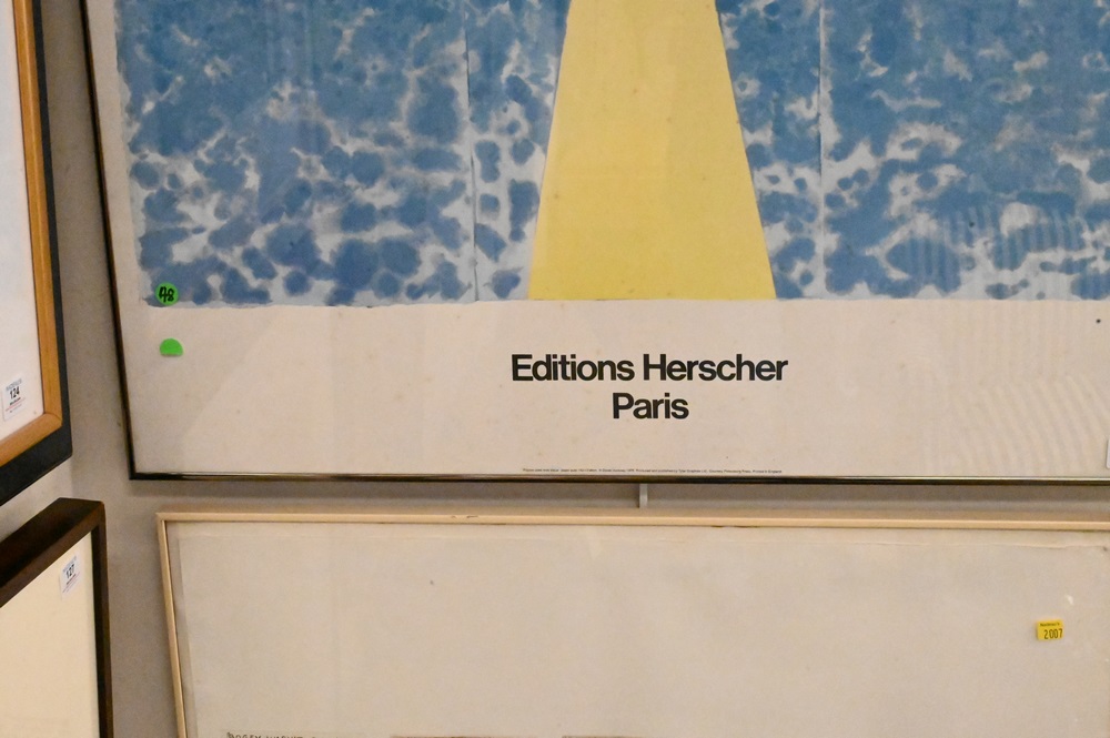 Lot 126: David Hockney (British, born 1937), Piscines de Papier, Paris exhibition poster, circa 1978, 37″ x 34″.