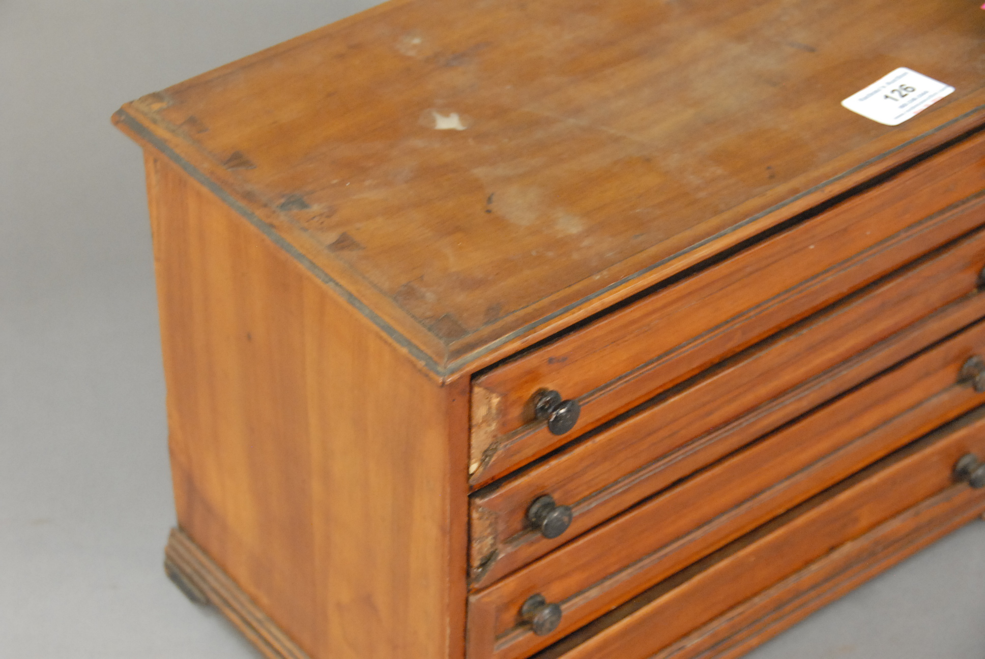 Lot 126: Diminutive four drawer chest on short bracket feet, late 18th – early 19th century, ht. 10in. wd. 14in. dp. 8in.