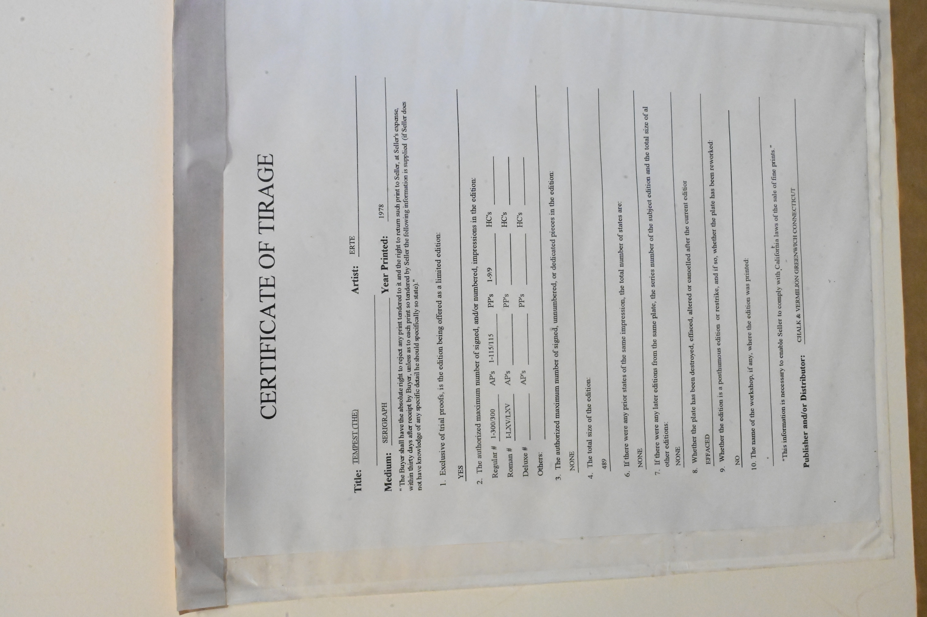 Pencil signed lower right “Erte”, embossed publishing stamp Circle Fine Art Corp. lower right