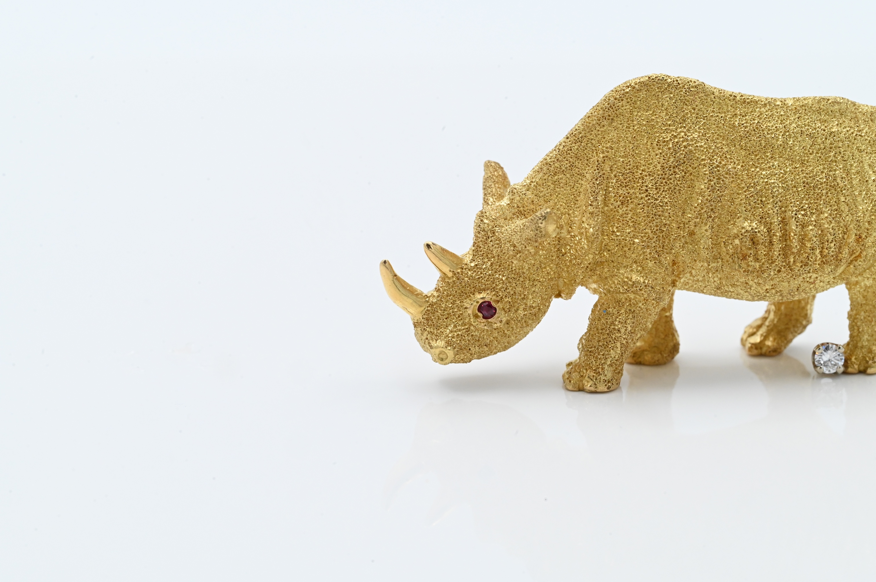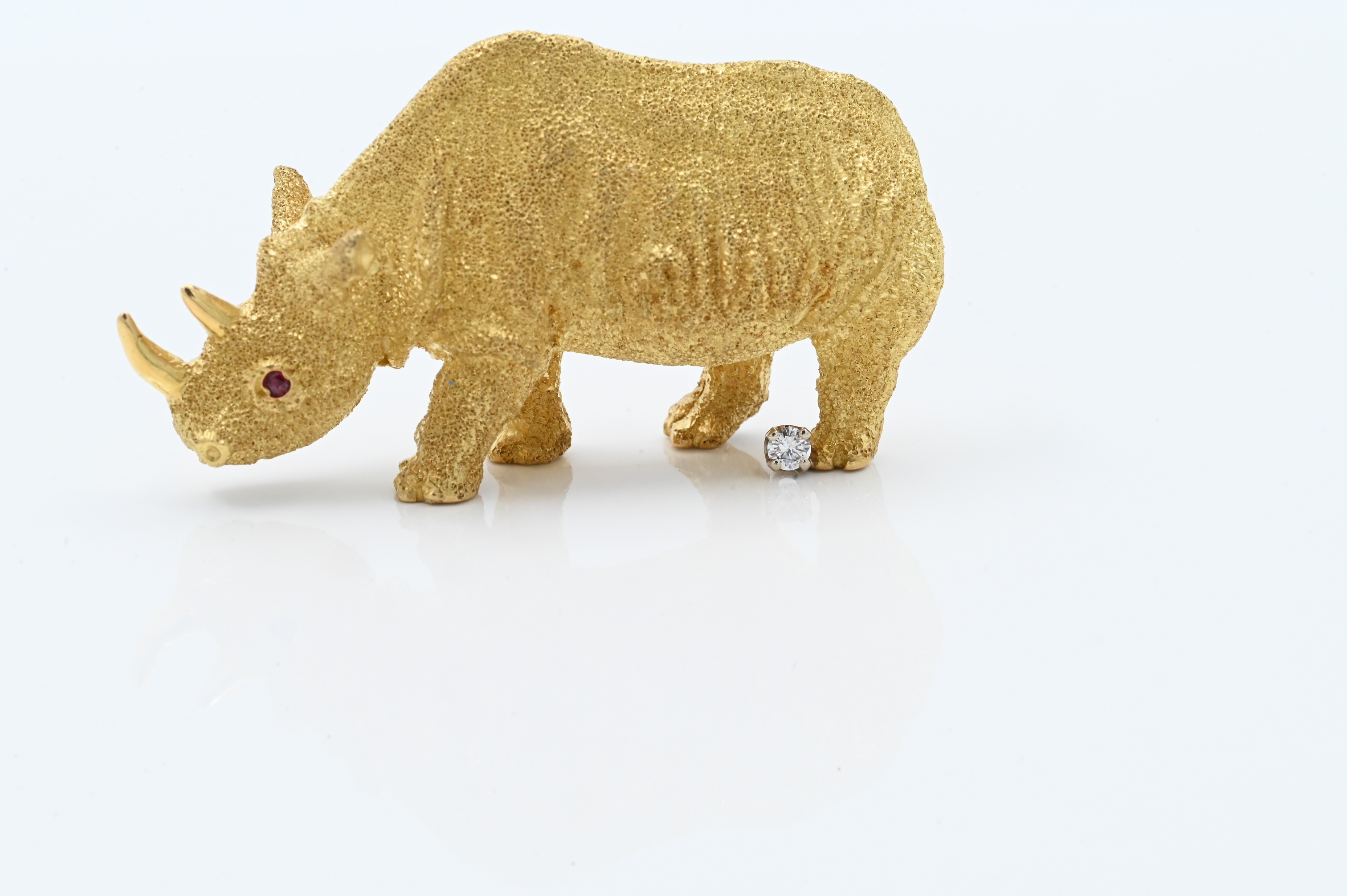 Lot 126: George Lederman 18K Yellow Gold Rhinoceros Brooch