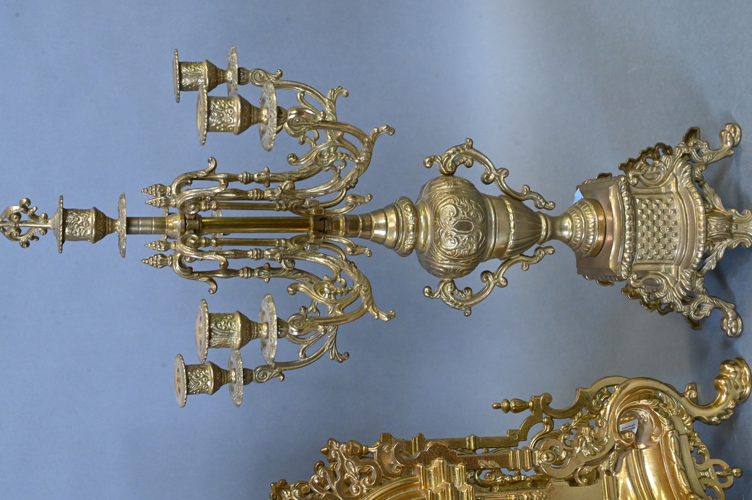 Lot 126: German Imperial Three Piece Brass Mantel Set