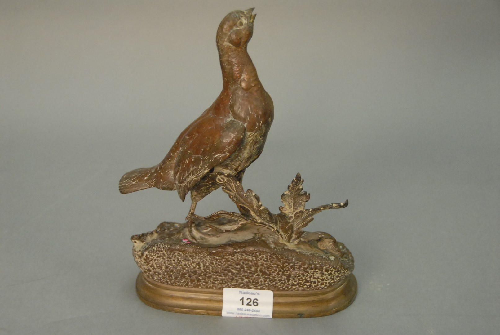 J. Moignier bronze of game bird, 19th century. ht. 9 in. lg. 7 in.