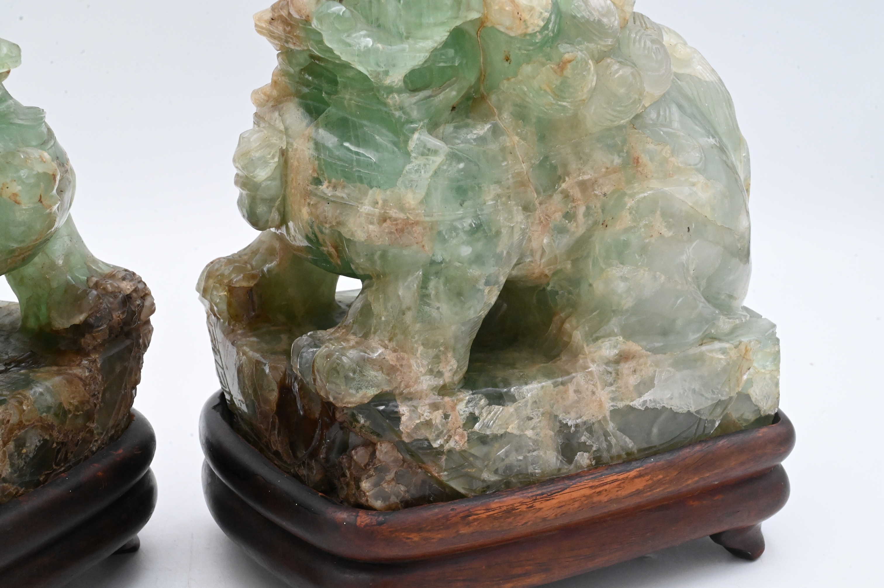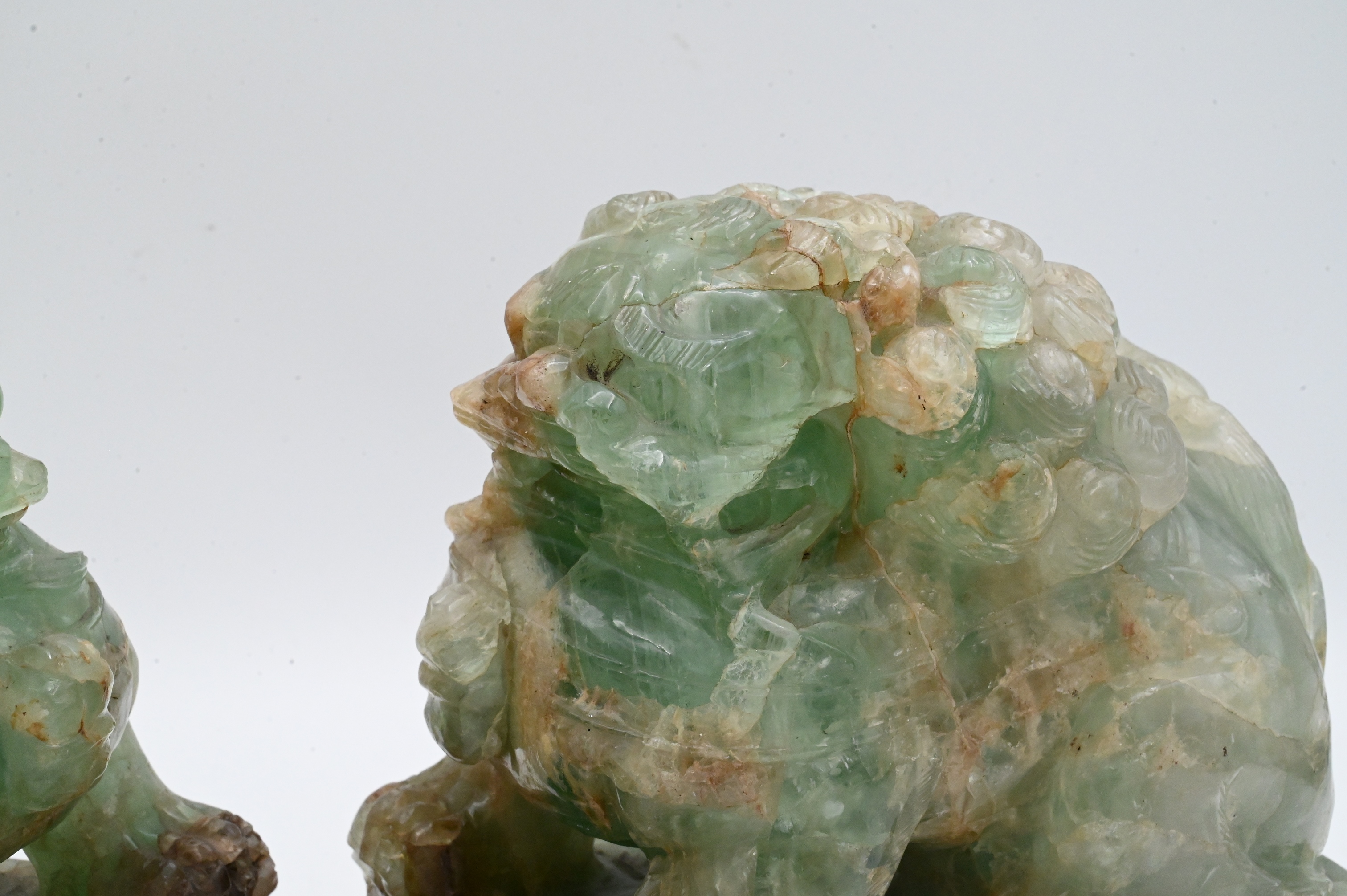 Pair of Chinese Carved Green Quartz Foo Dogs