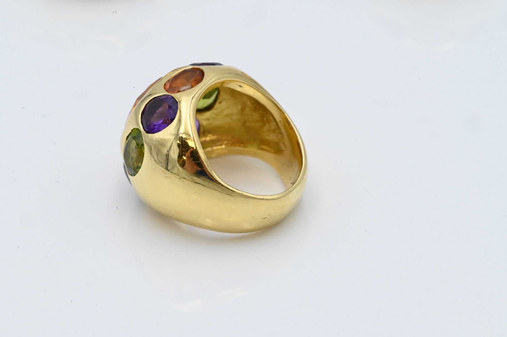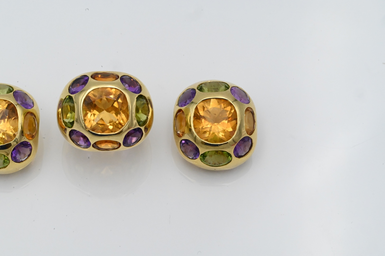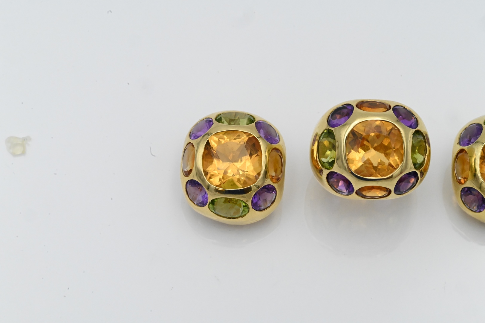 to include a pair of ear clips, along with a ring imbedded with multi-colored stones
