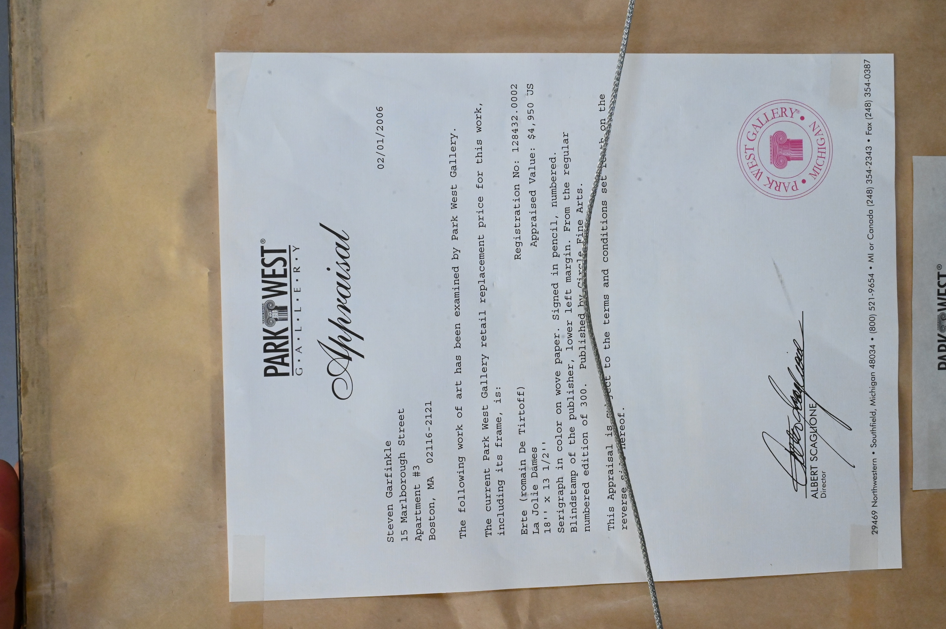 Pencil signed lower right Erte, Circle Fine Arts publisher blindstamp lower left