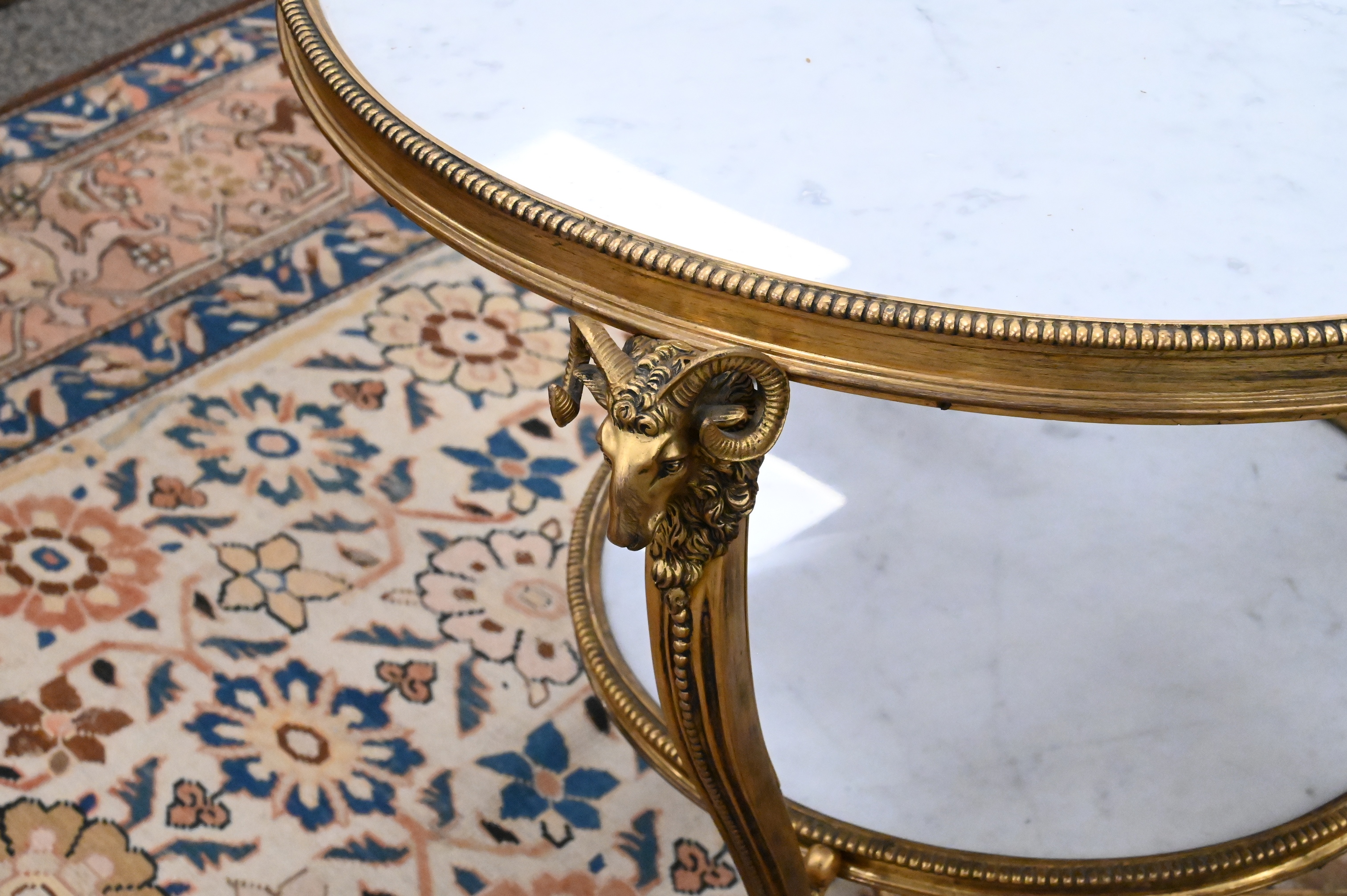 beaded marble edges, ram’s-head legs, rosette stretcher, early 20th century