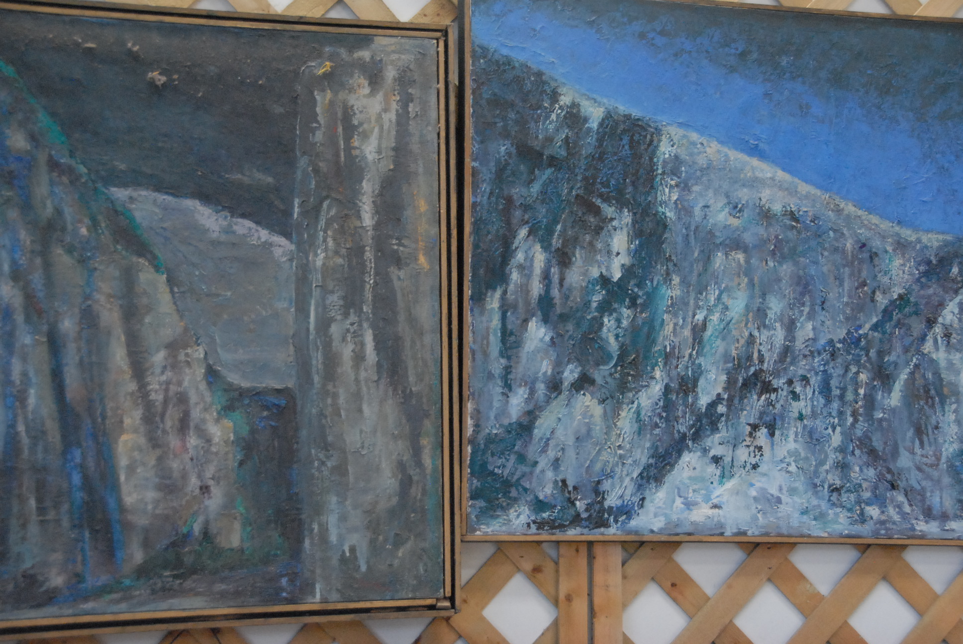 Group of four E Hellman paintings including oil on canvas Cliffs signed lower right 26 x 21 and oil on canvas abstract 20 x 16.