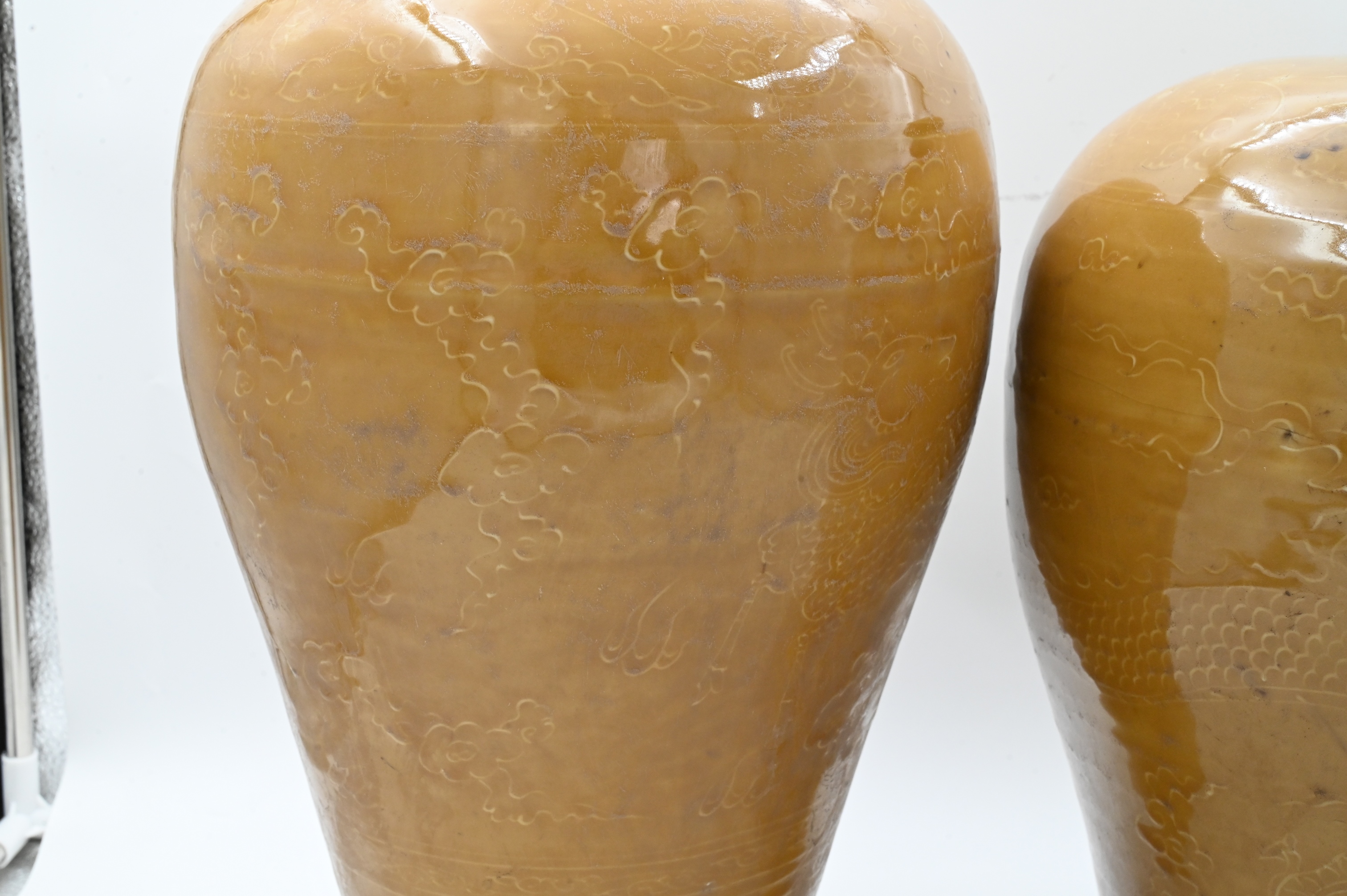 Lot 127: Near Pair of Chinese Meiping Style Yellow Glazed Jars