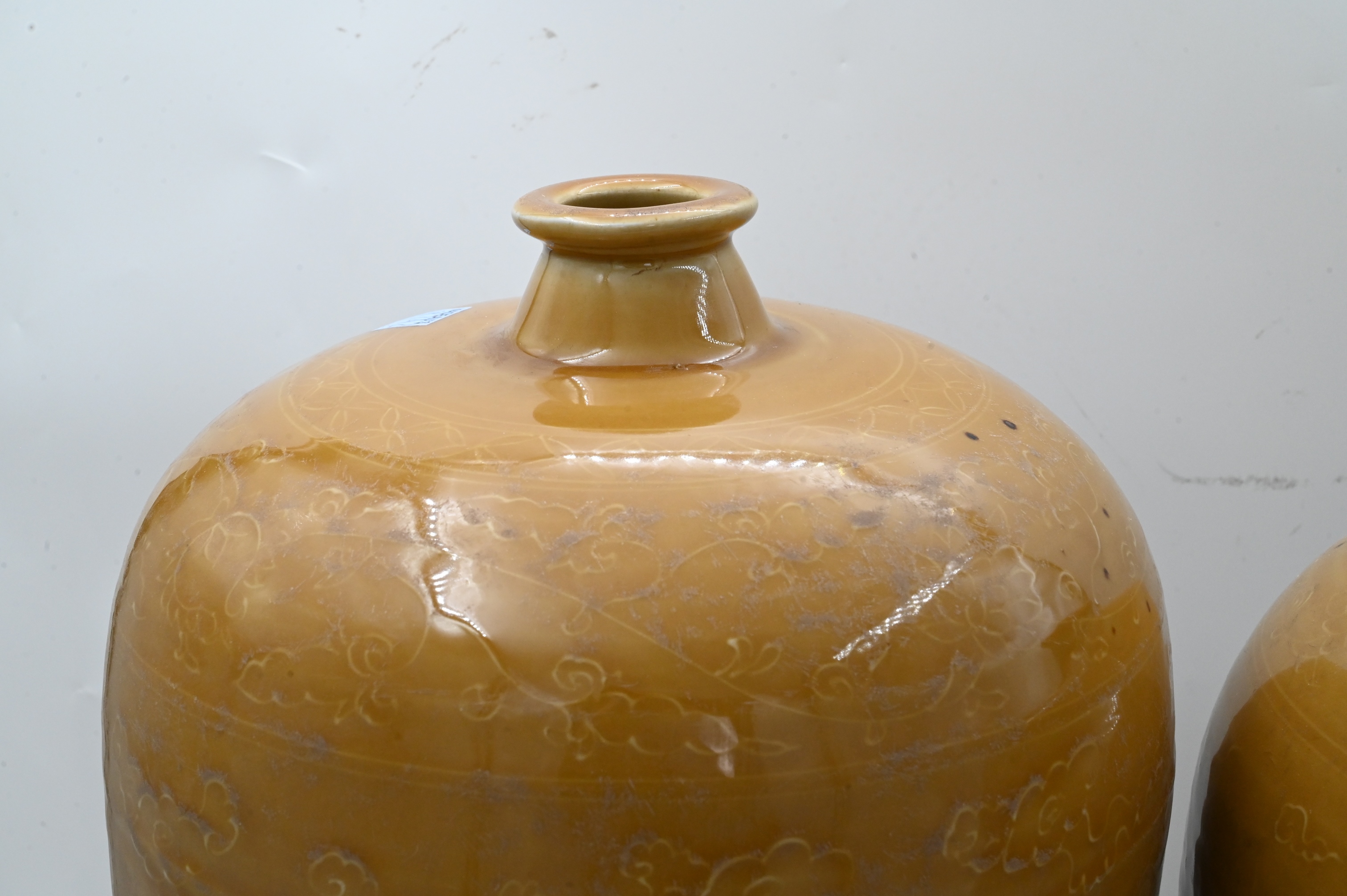 Near Pair of Chinese Meiping Style Yellow Glazed Jars