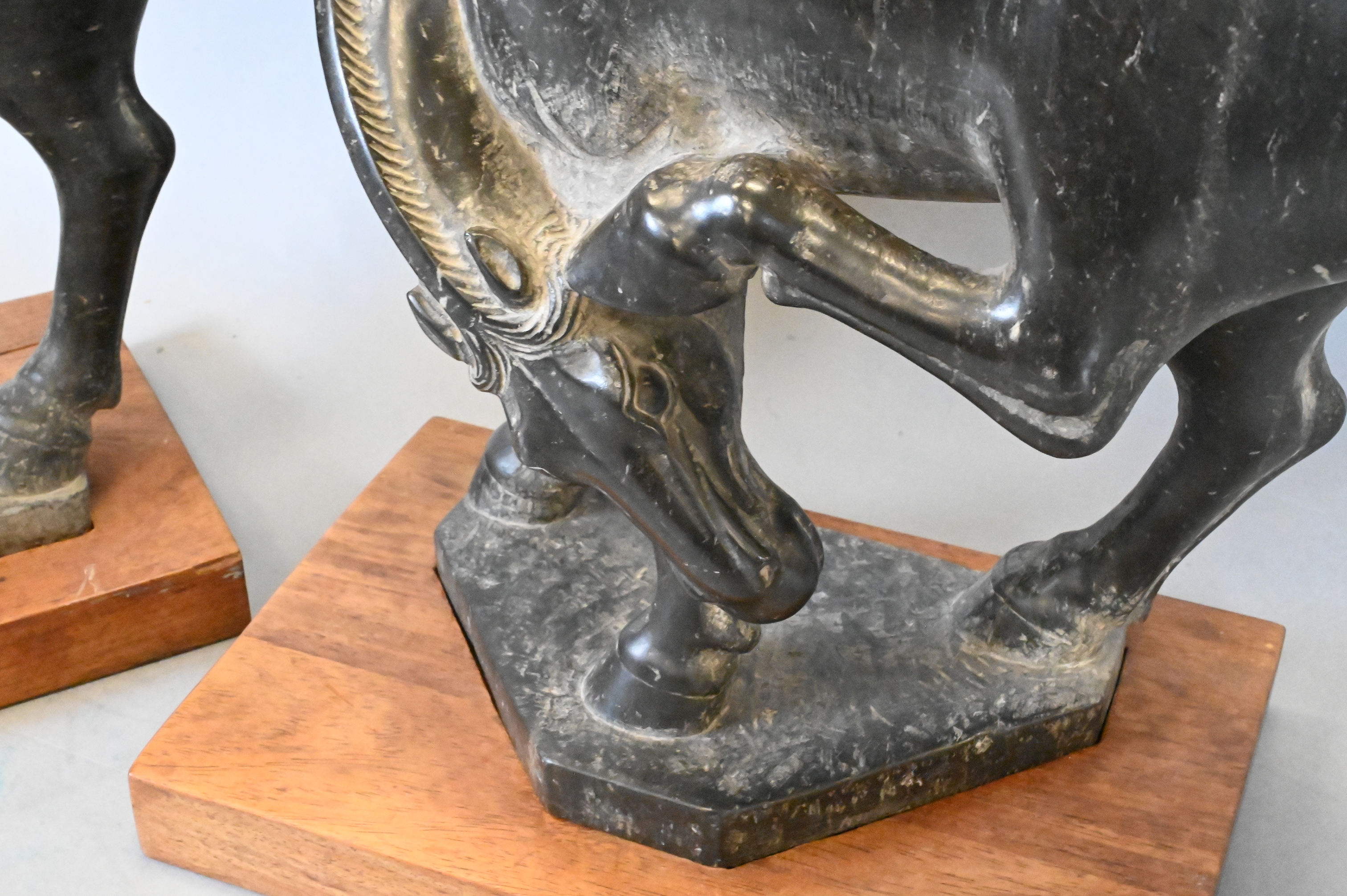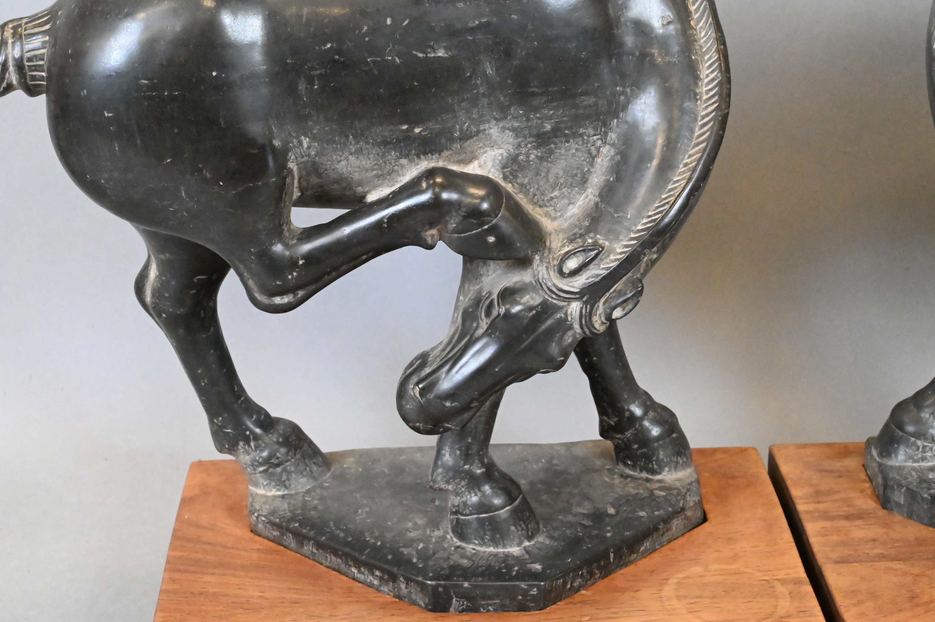 Lot 127: Pair of Chinese Carved Dark Limestone Figures of Horses