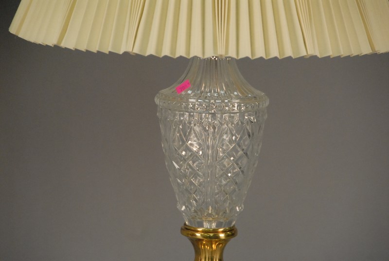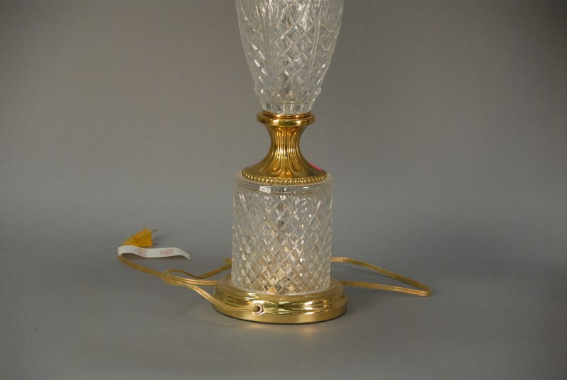 Pair of cut crystal and brass table lamps, ht. 33in.