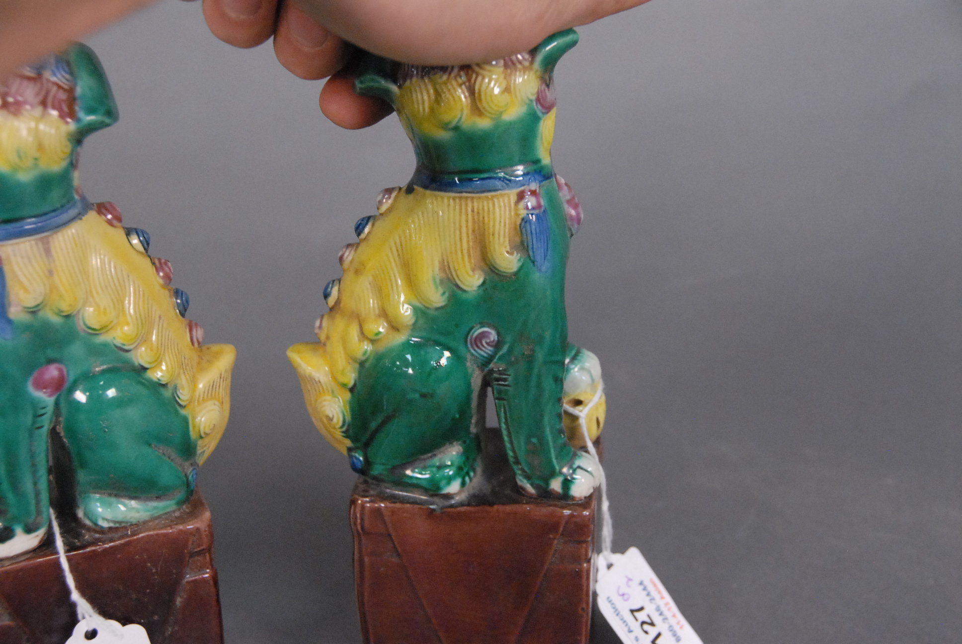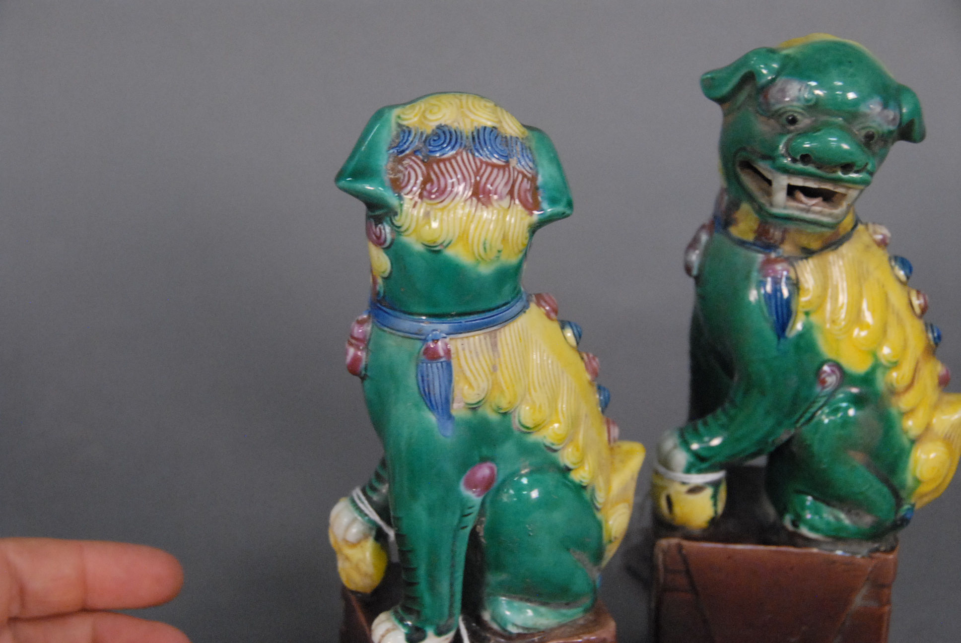 Lot 127: Pair of porcelain foo dogs, hts. 8in.