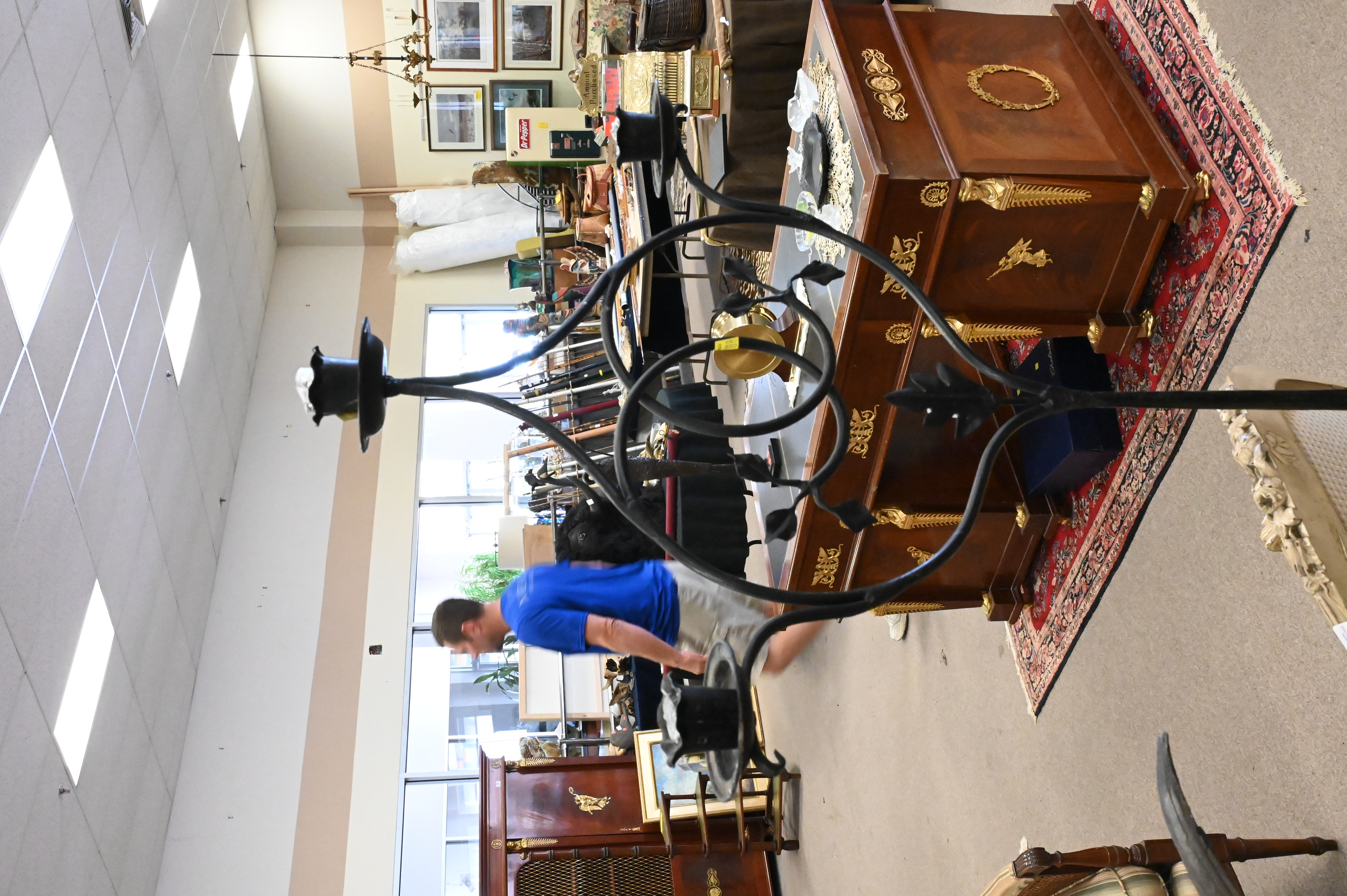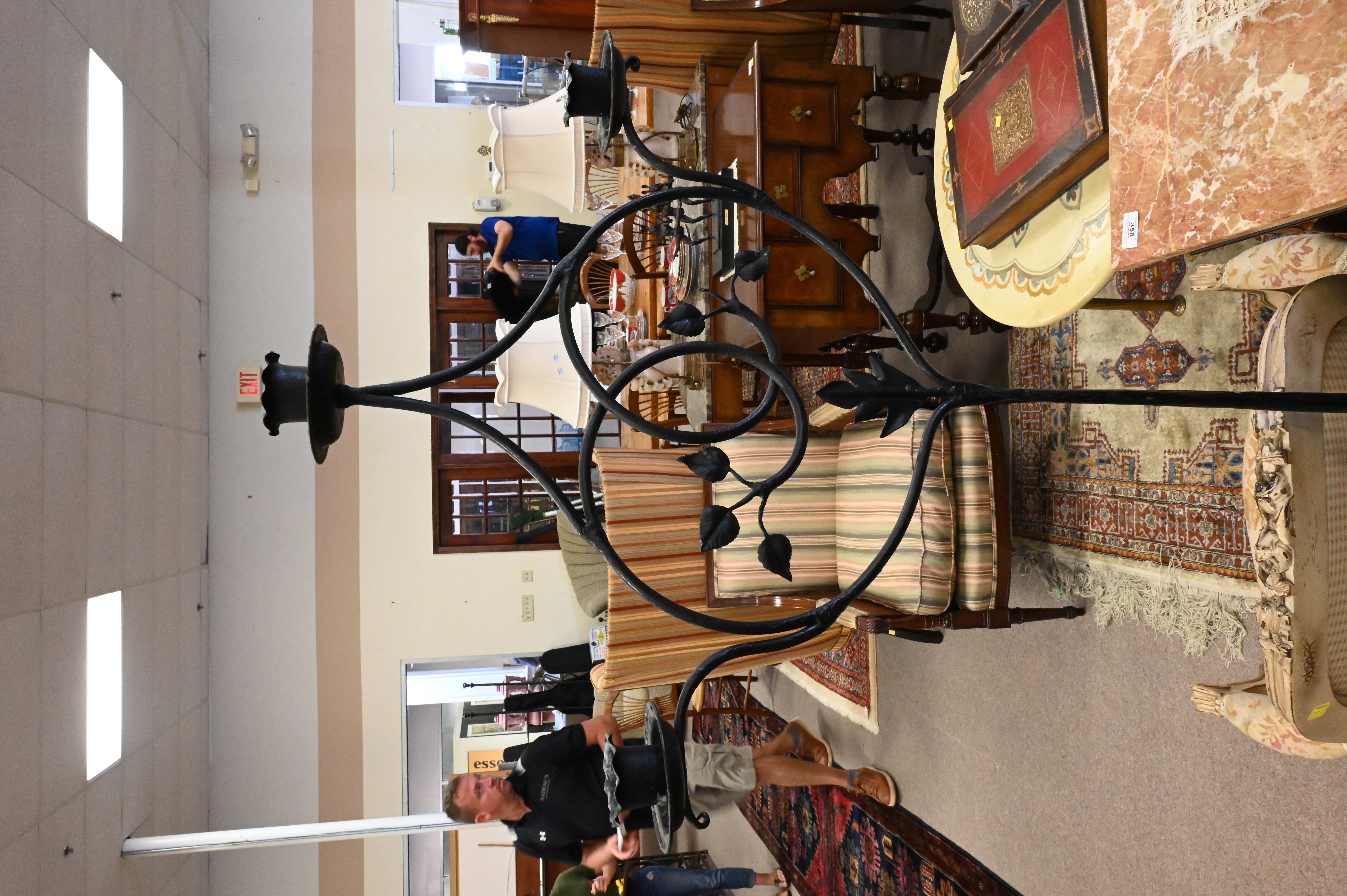 Pair of Wrought Iron Floor Candelabra, height 67 inches
