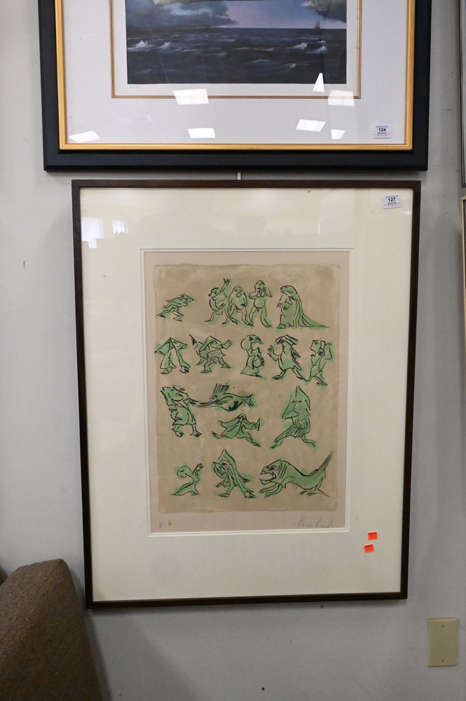 Lot 127: Reinhoud d’Haese (Belgian, 1928 – 2007), “17 Pour”, lithograph, signed in pencil lower right, 20.5″ x 15″.