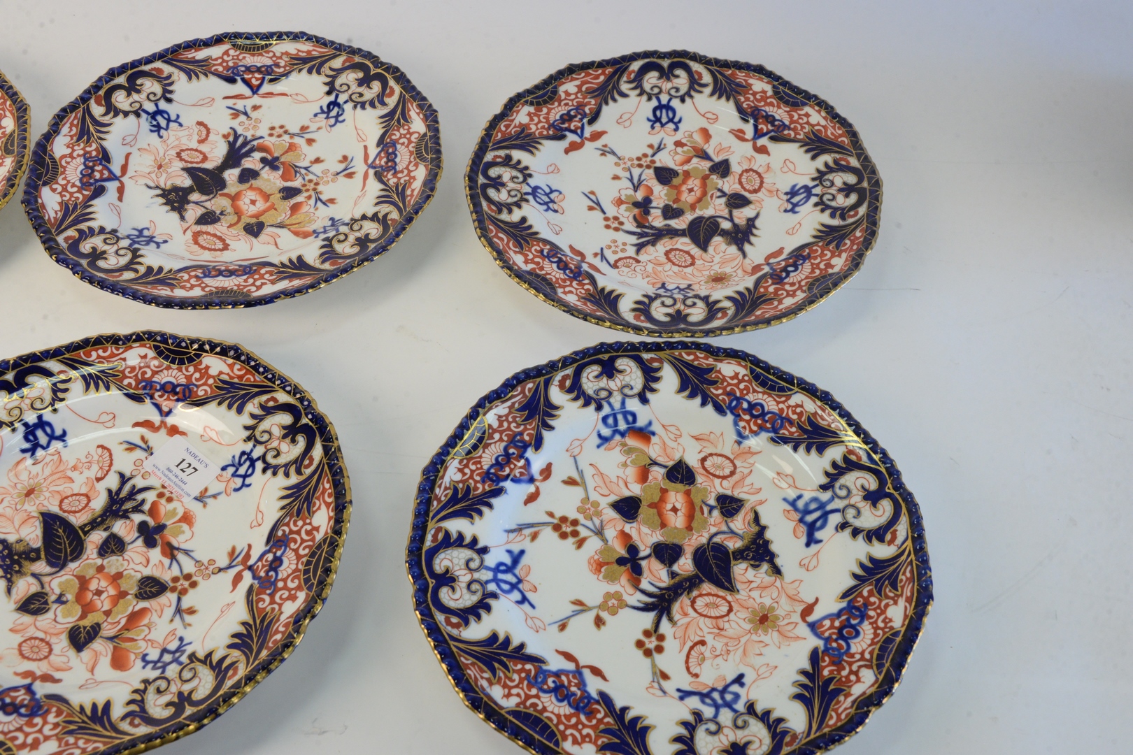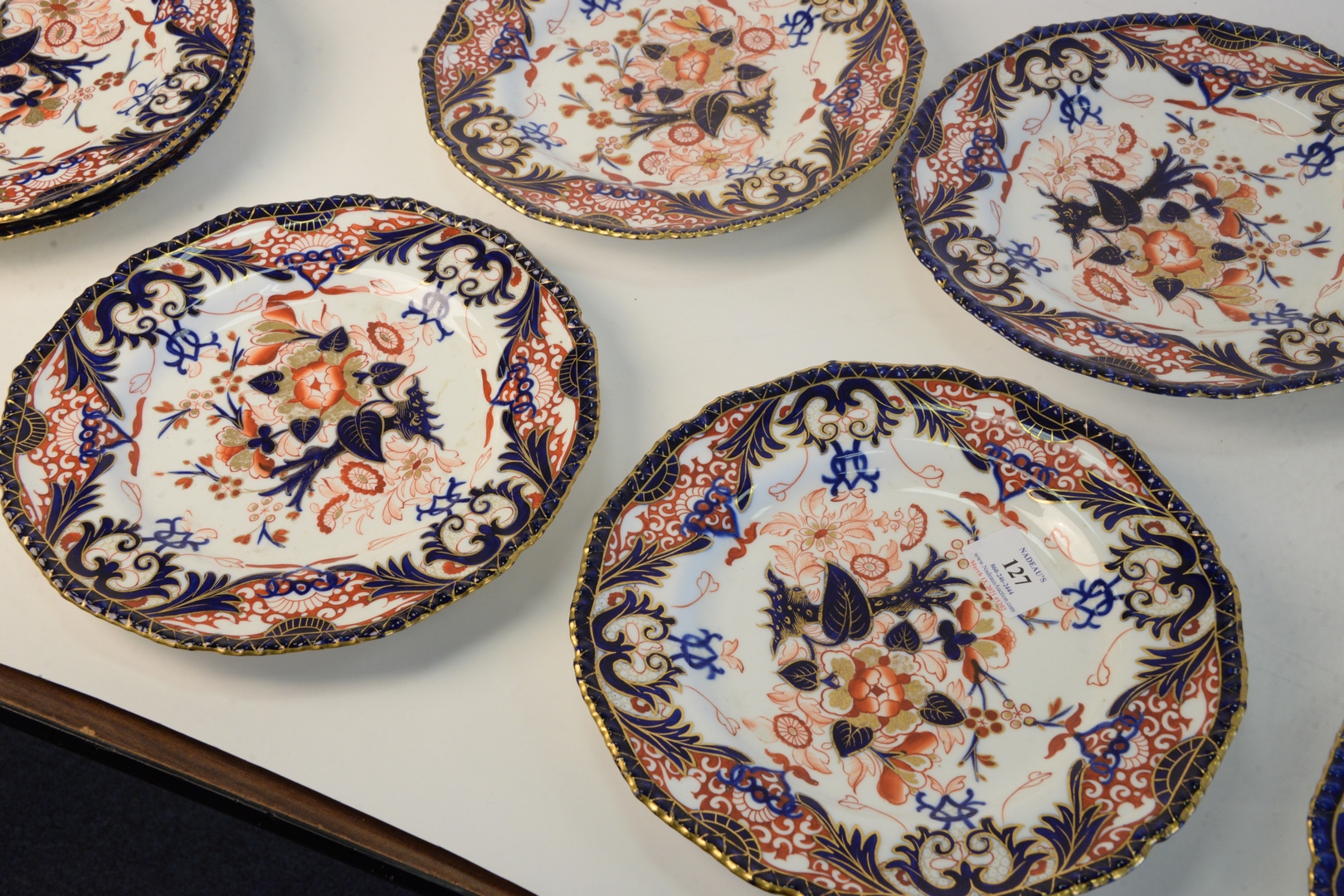 Lot 127: Set of Eight Bloor Derby Porcelain Dinner Plates, marked on bottom ‘Bloor Derby’, diameter 10 inches.