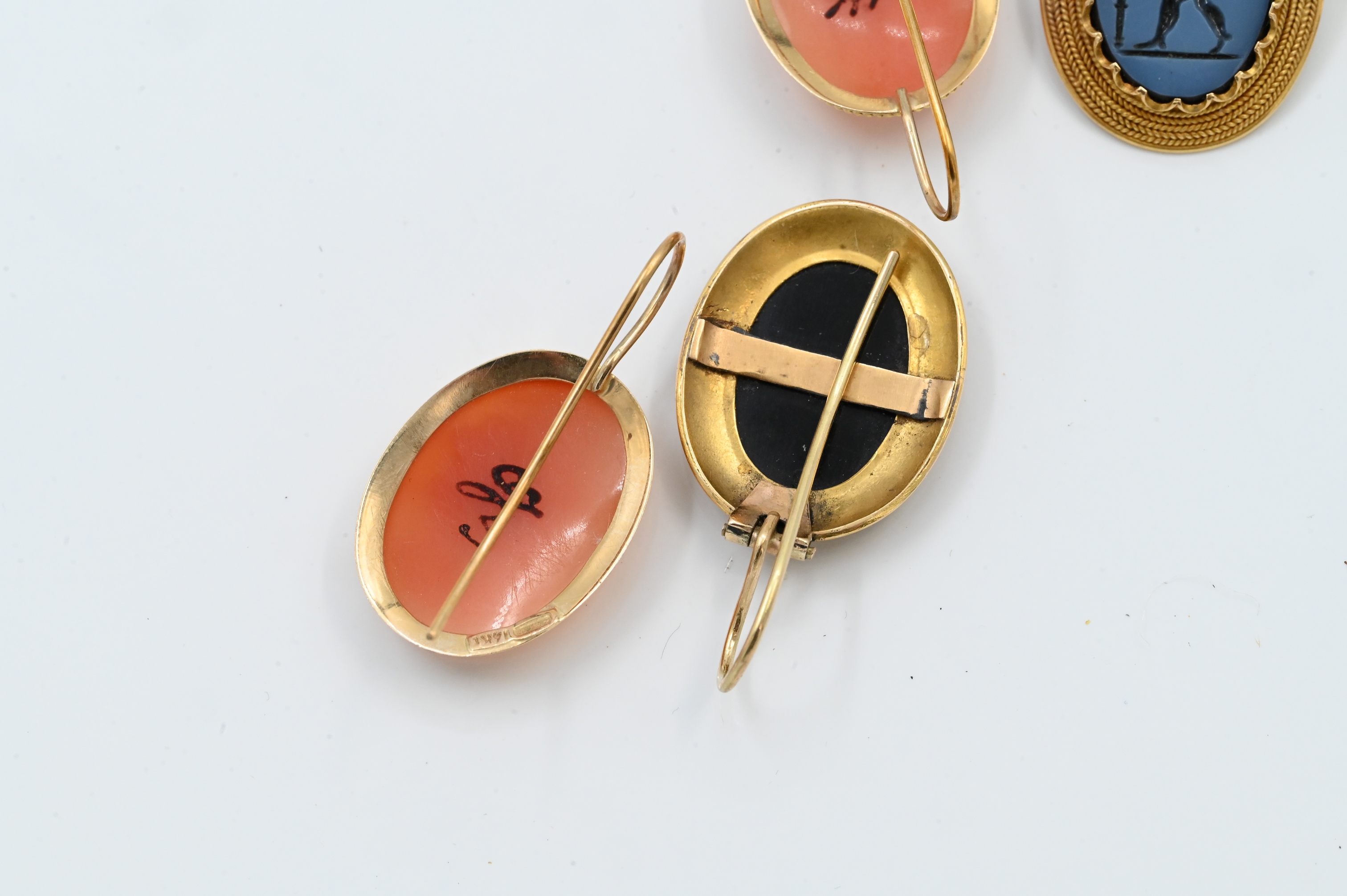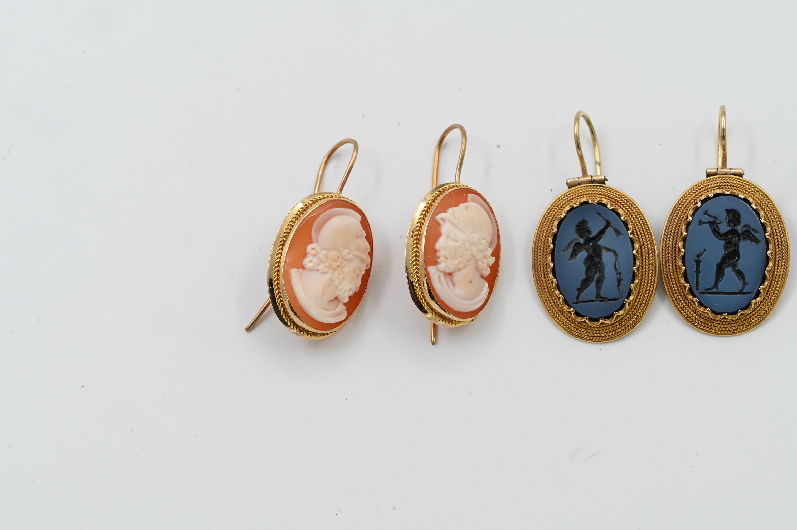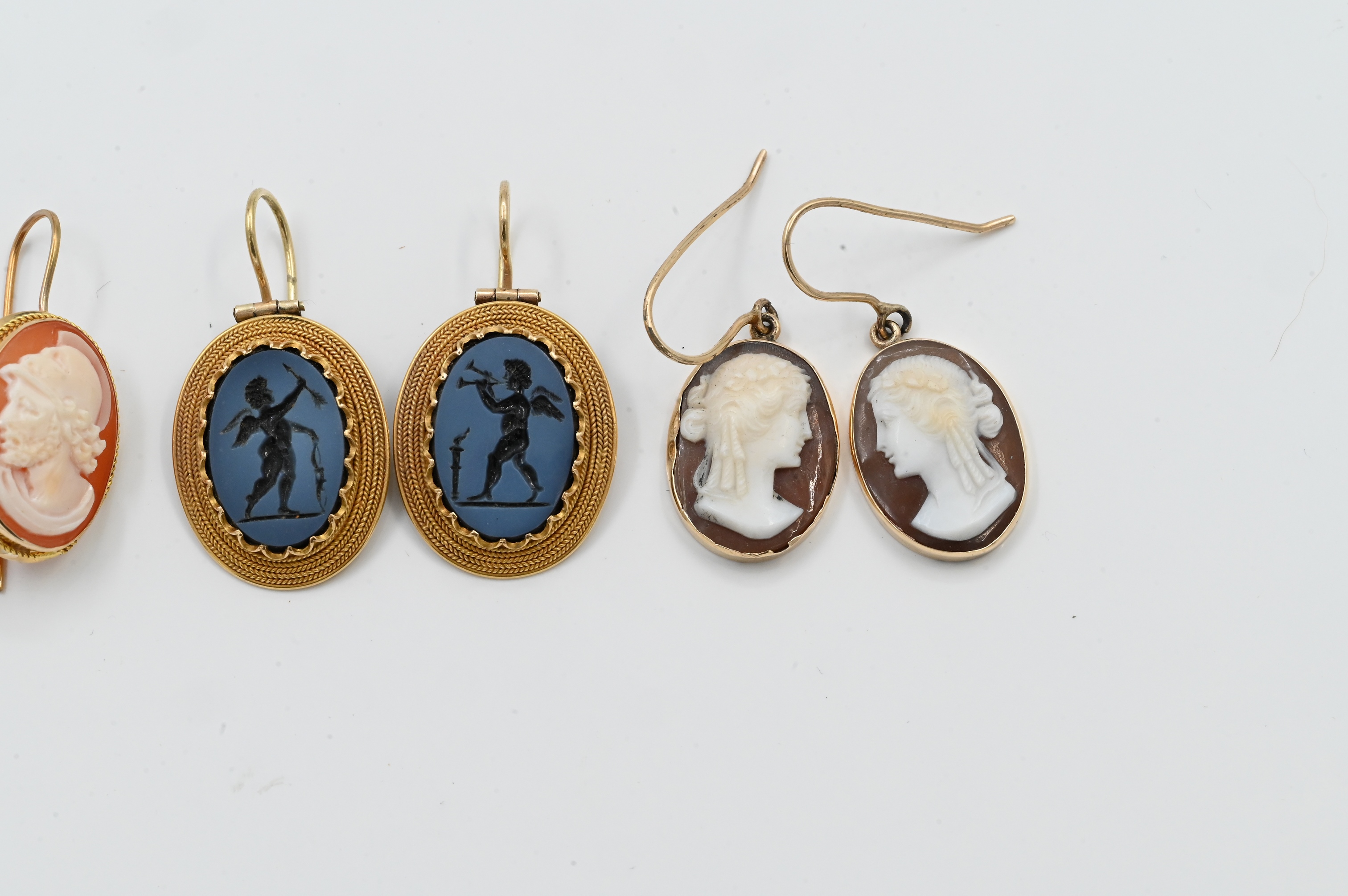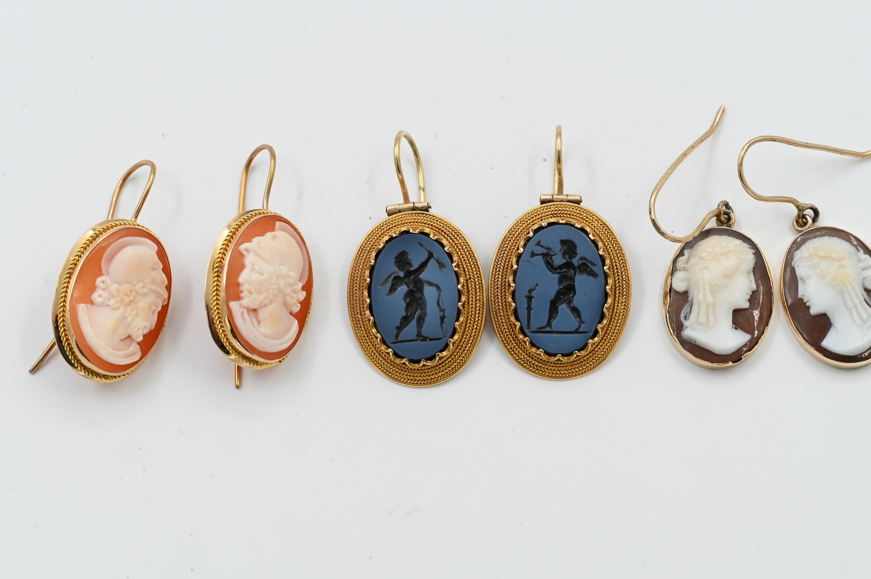 Lot 127: Three Pairs of Victorian Gold and Cameo Earrings
