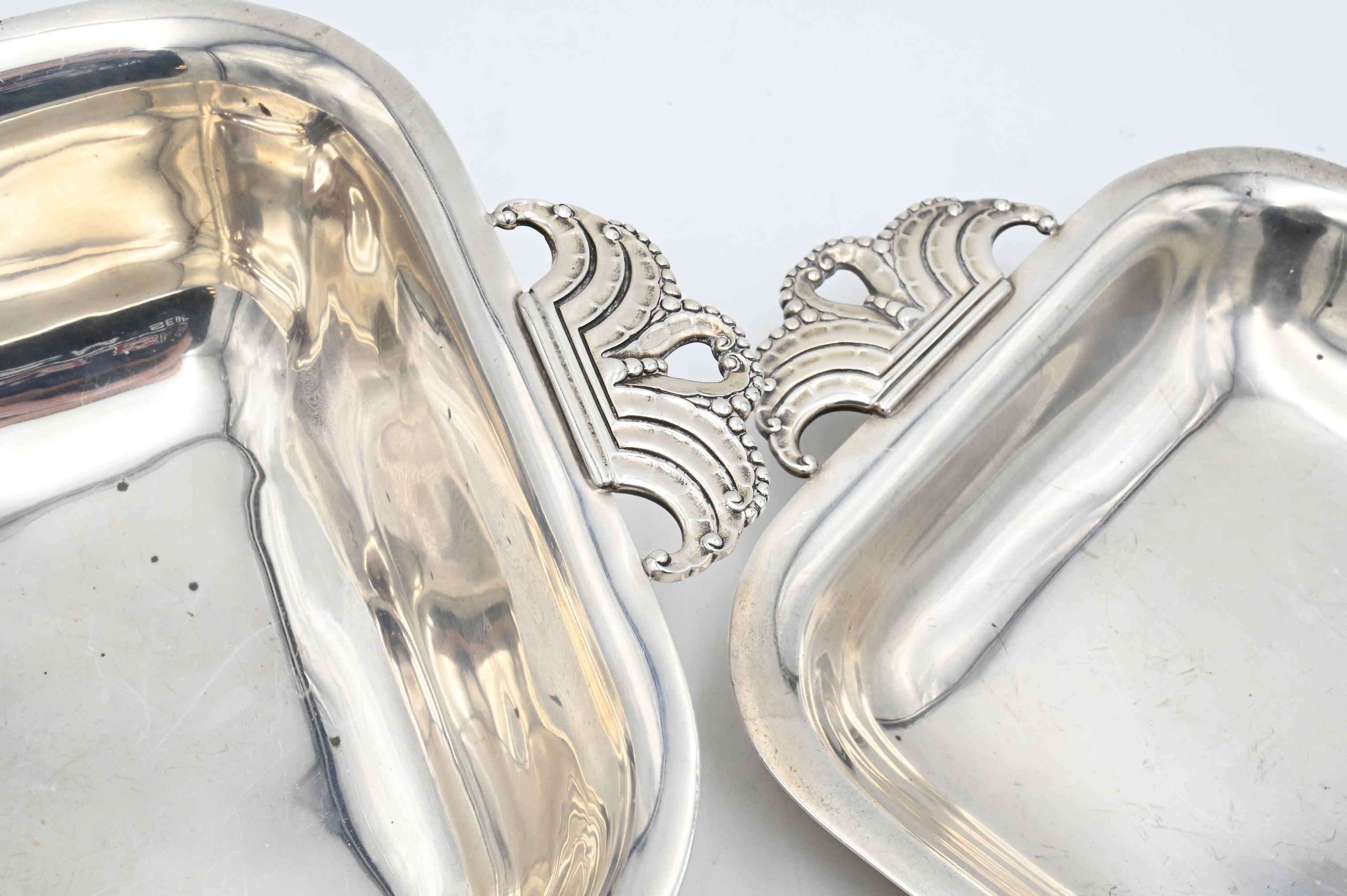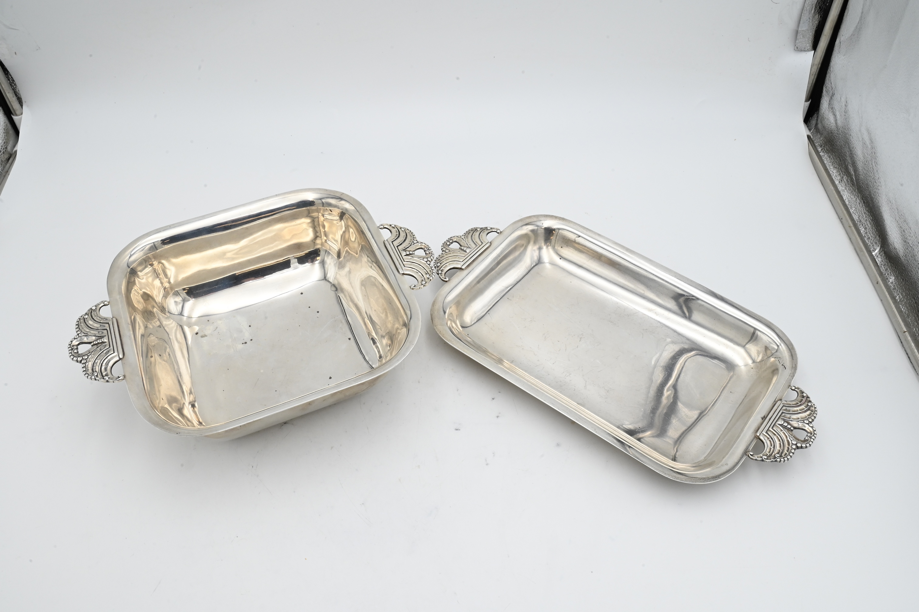 Condition: both with wear, square dish with specks of tarnish and spot of heavy wear to interior