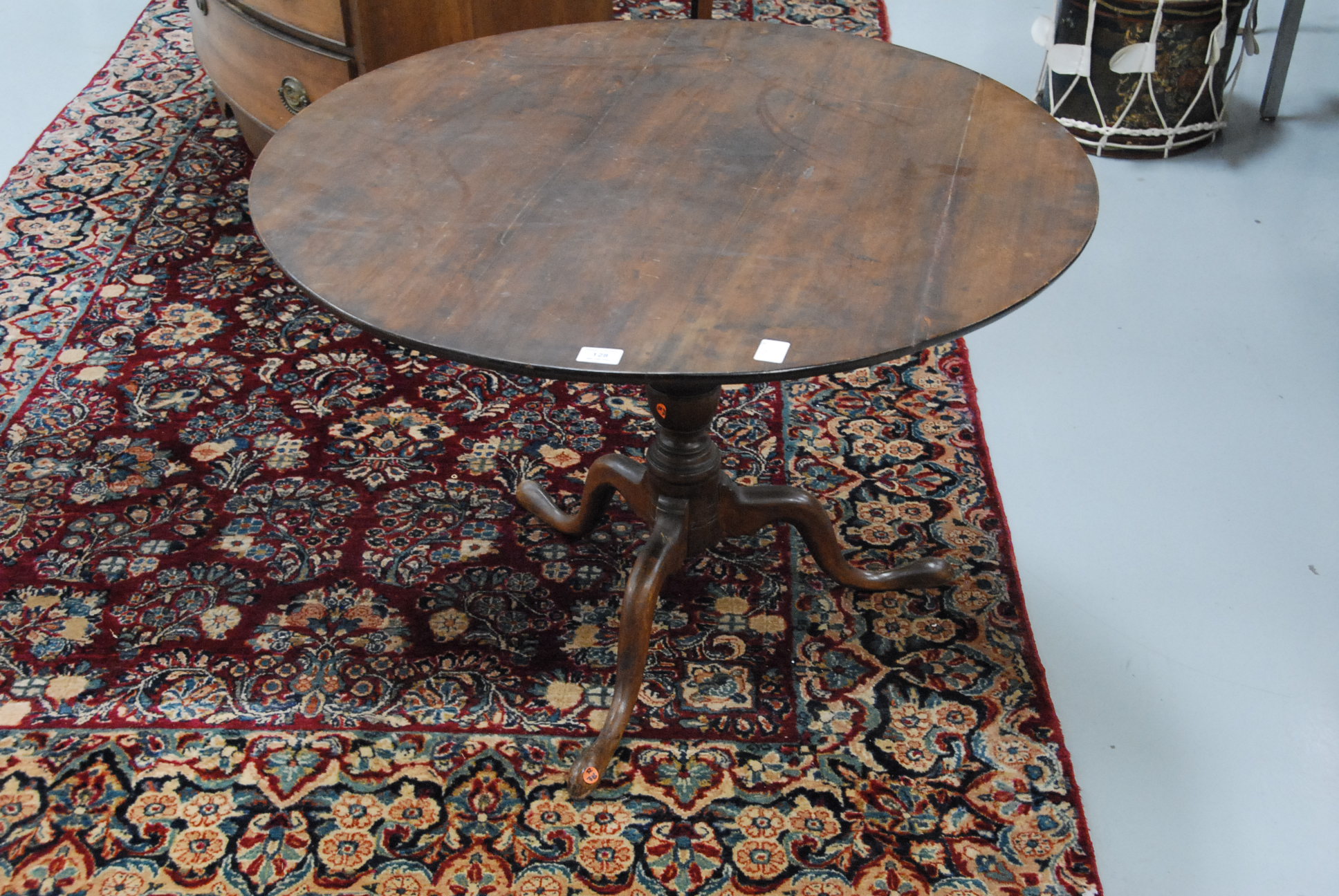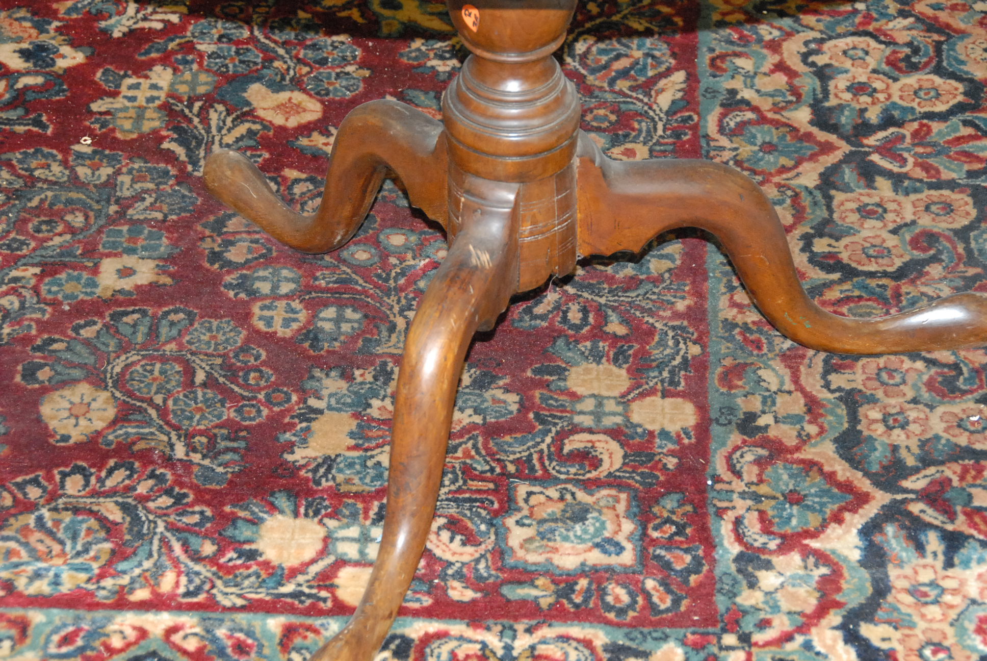 Cherry round tip tea table with birdcage on urn carved shaft ending in tripod base.