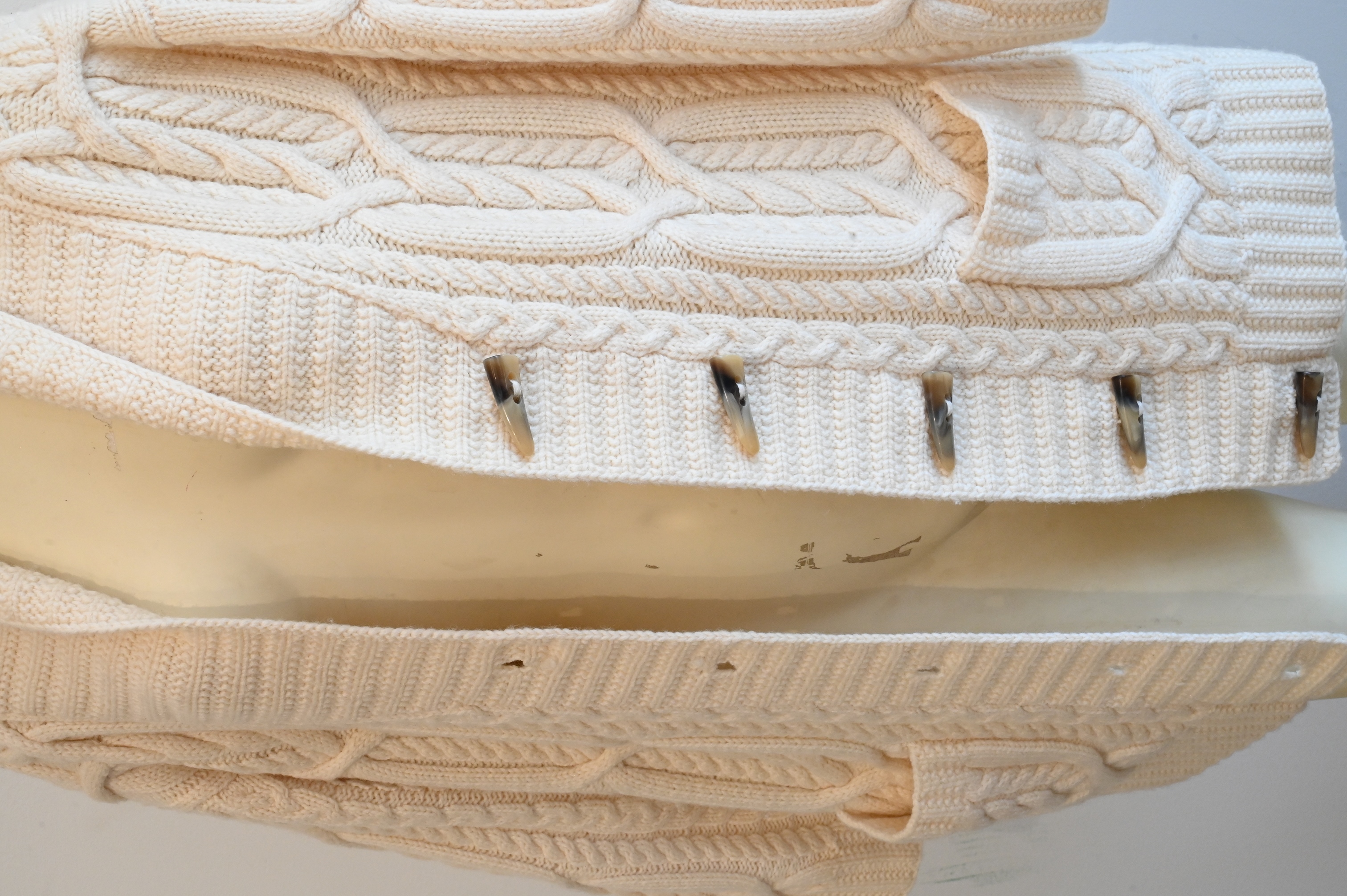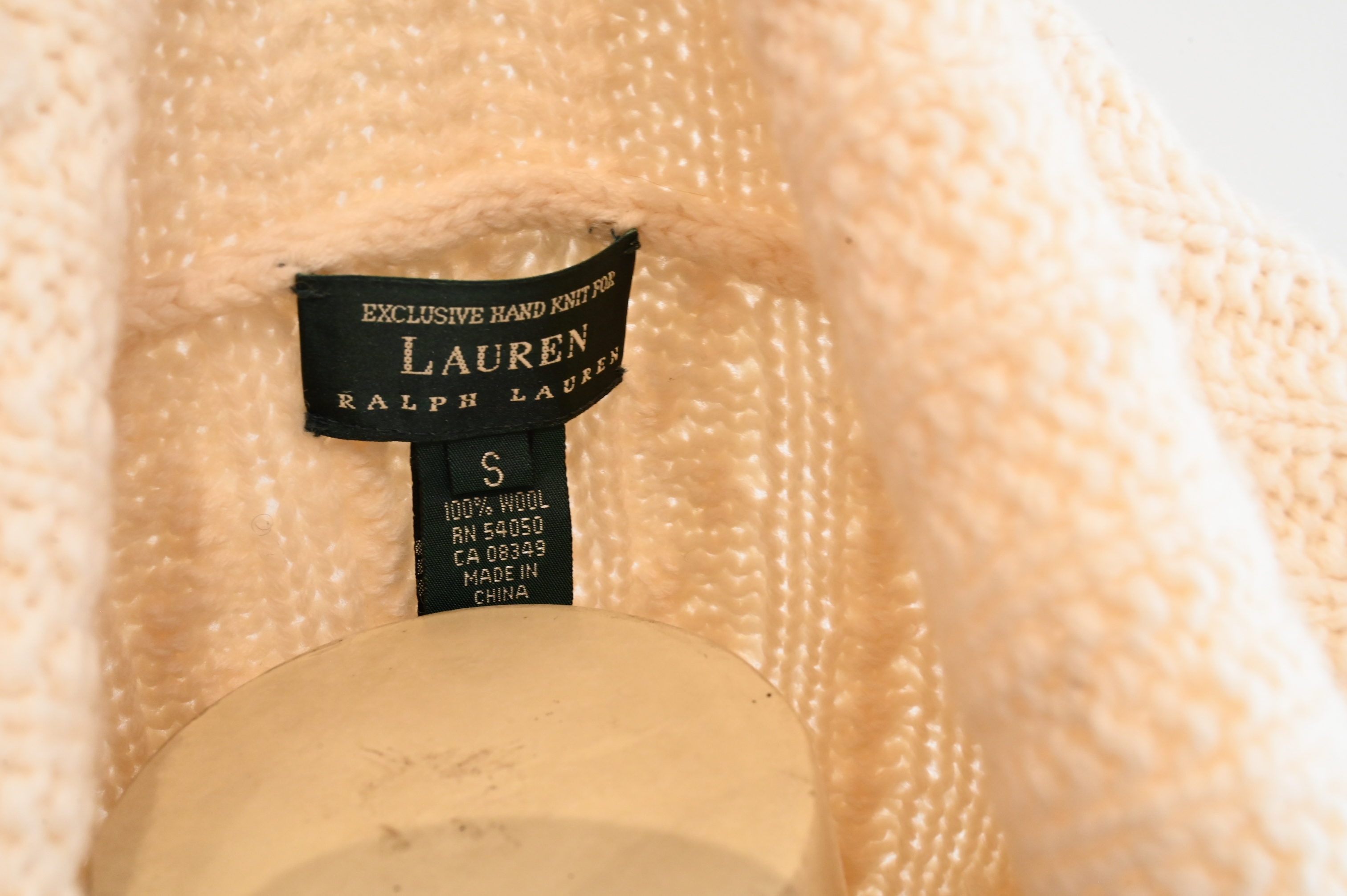 Lot 128: Men’s Ralph Lauren Vintage Cable Knit Wool Cardigan Sweater in Ivory