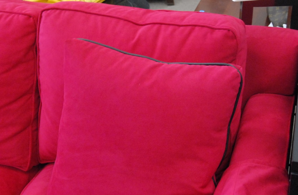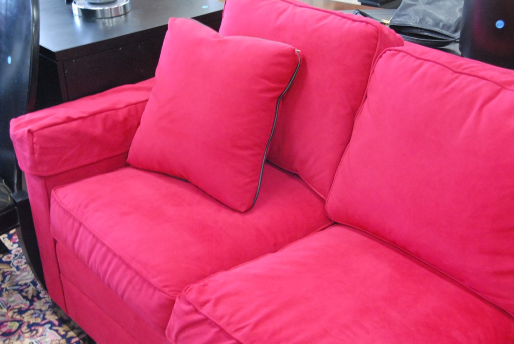 Red upholstered sofa bed American Bungalow Collection Vanguard Furniture in like brand new condition.