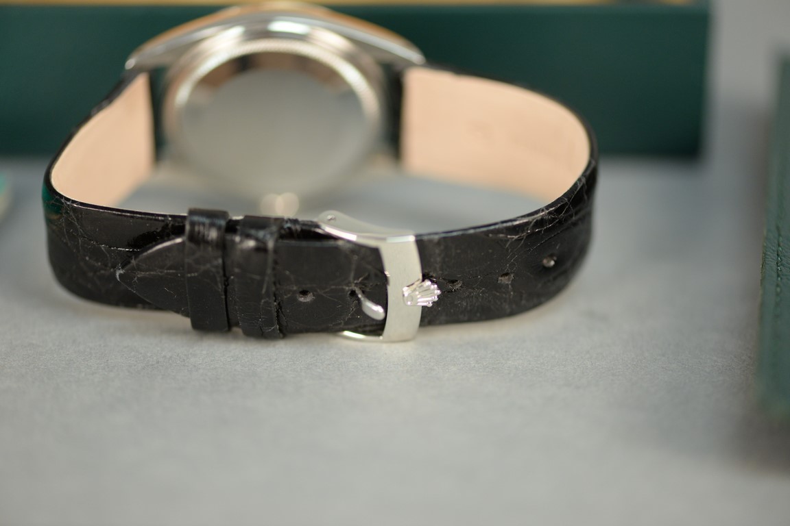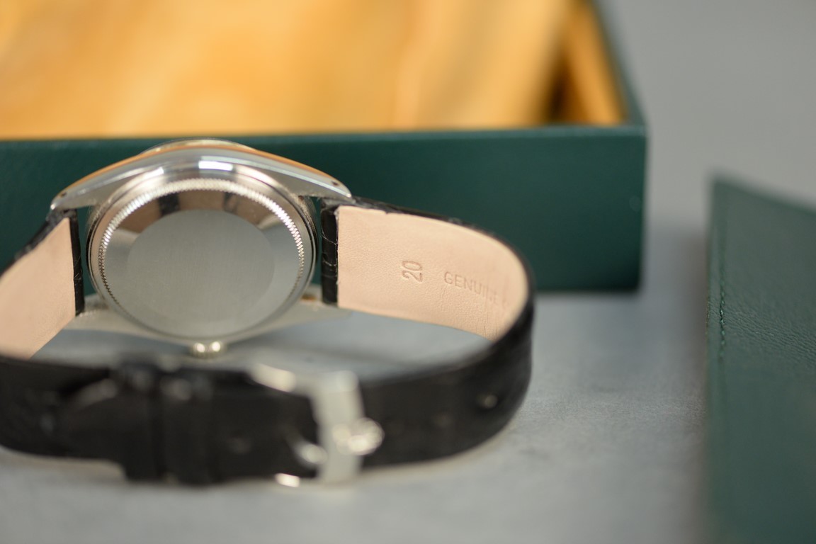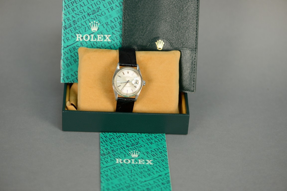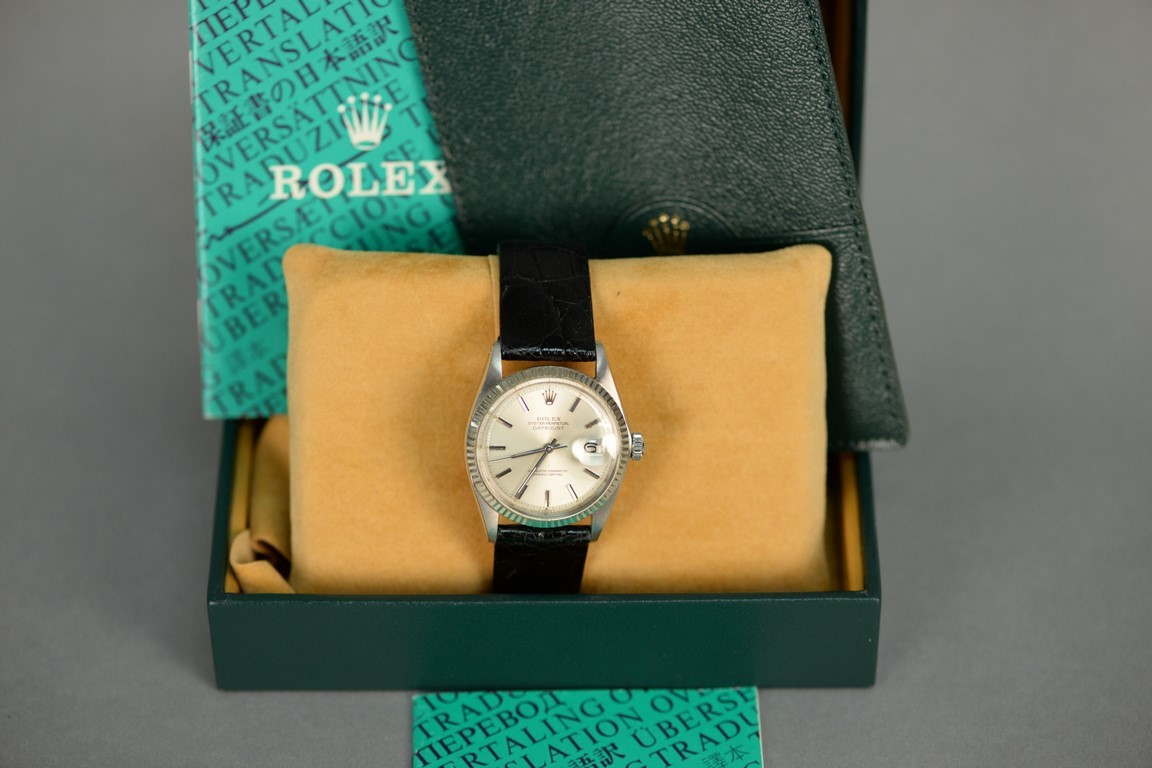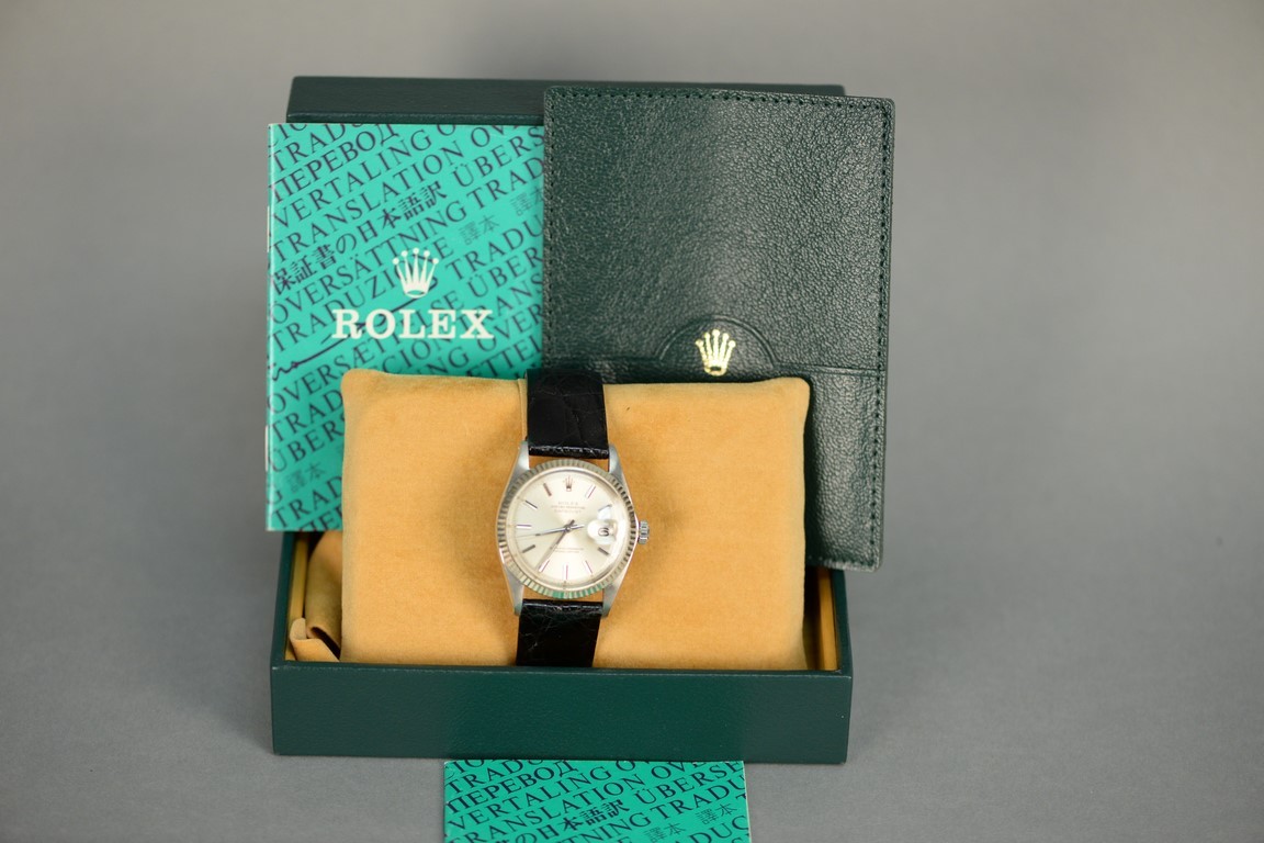 Rolex wristwatch Datejust stainless steel 1601, 2161616, 18K white gold fluted bezel.