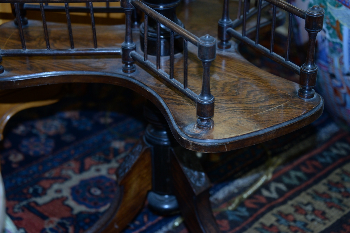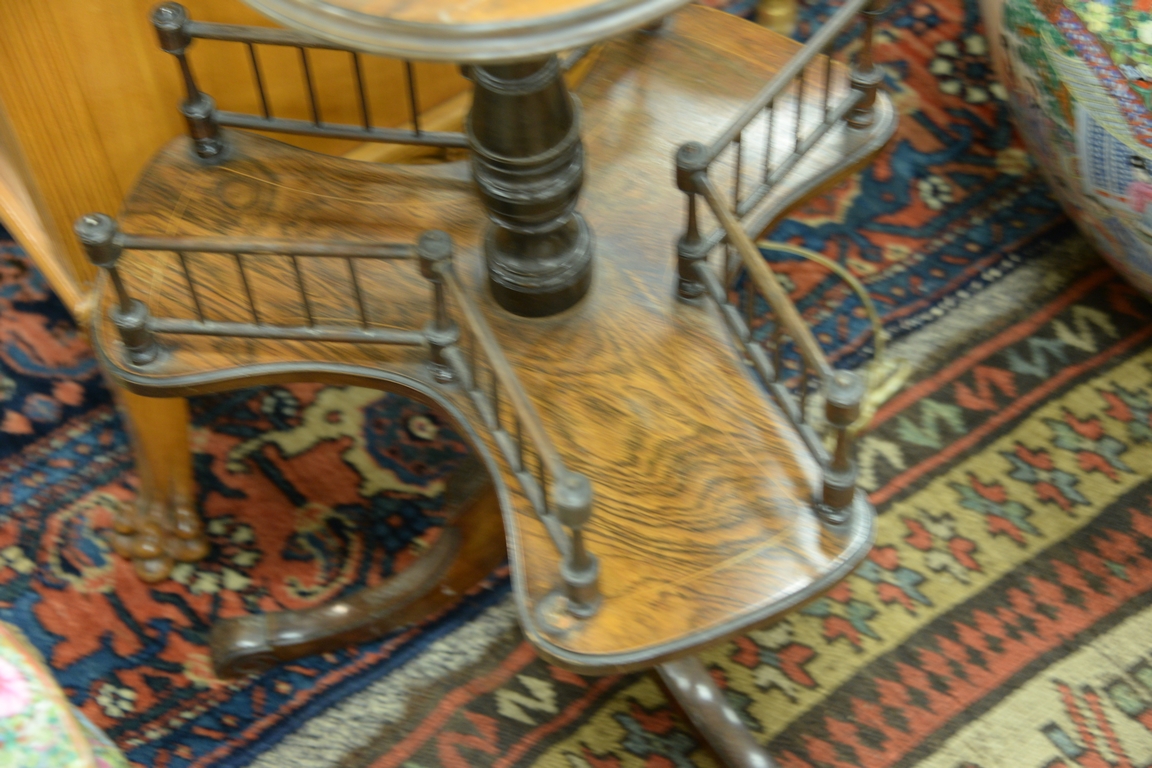 Rosewood revolving lamp/table with triple section on tripod. table height 28 1/2in.