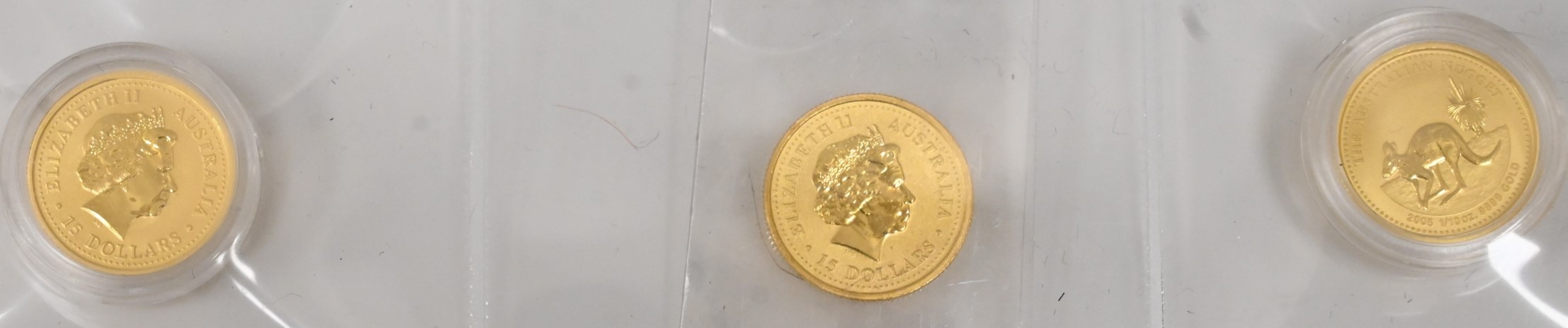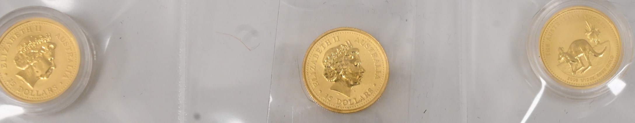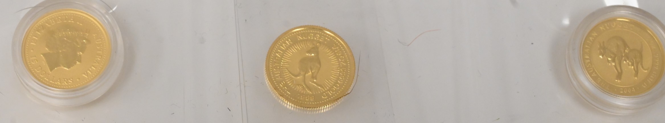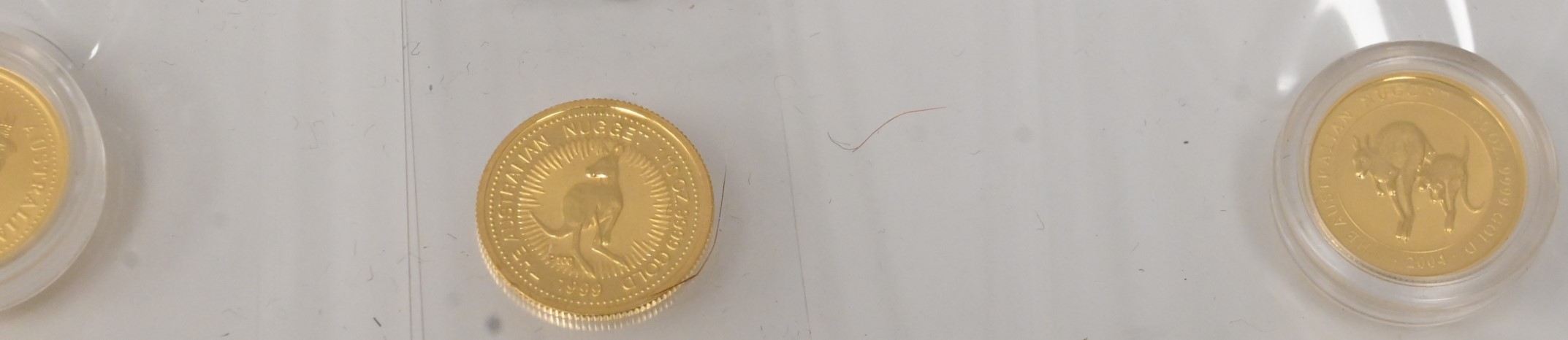 Six Gold Foreign Coins, to include 2005 australian $15 1/10 ounce, 1989 Australian $25 ¼ ounce, 1911-S Sovereign .2354 ounce, 2006 Australian $15 1/10 ounce, 1989 Australian $15 1/10 ounce and 2004 Australian $15 1/10 ounce.