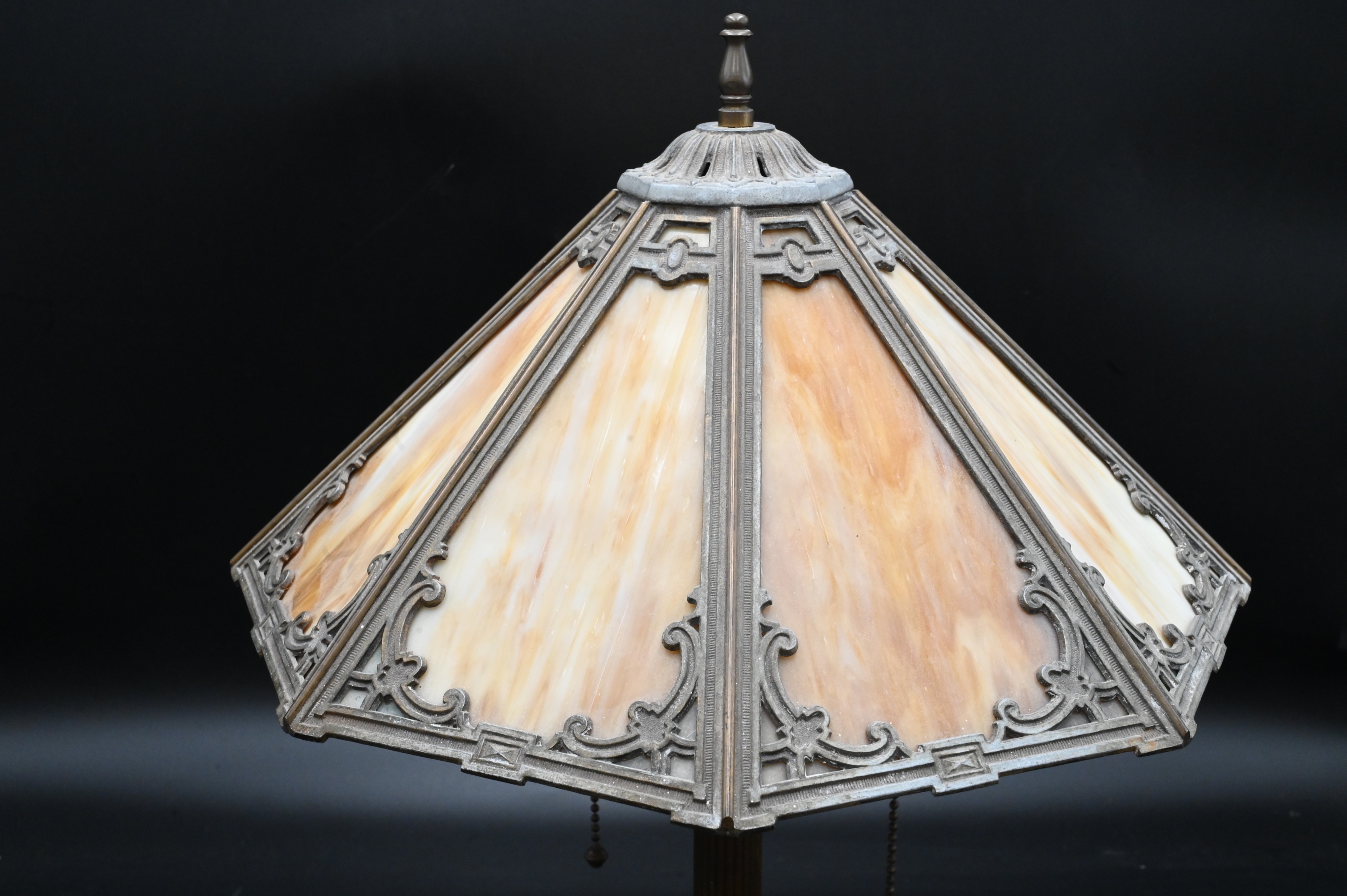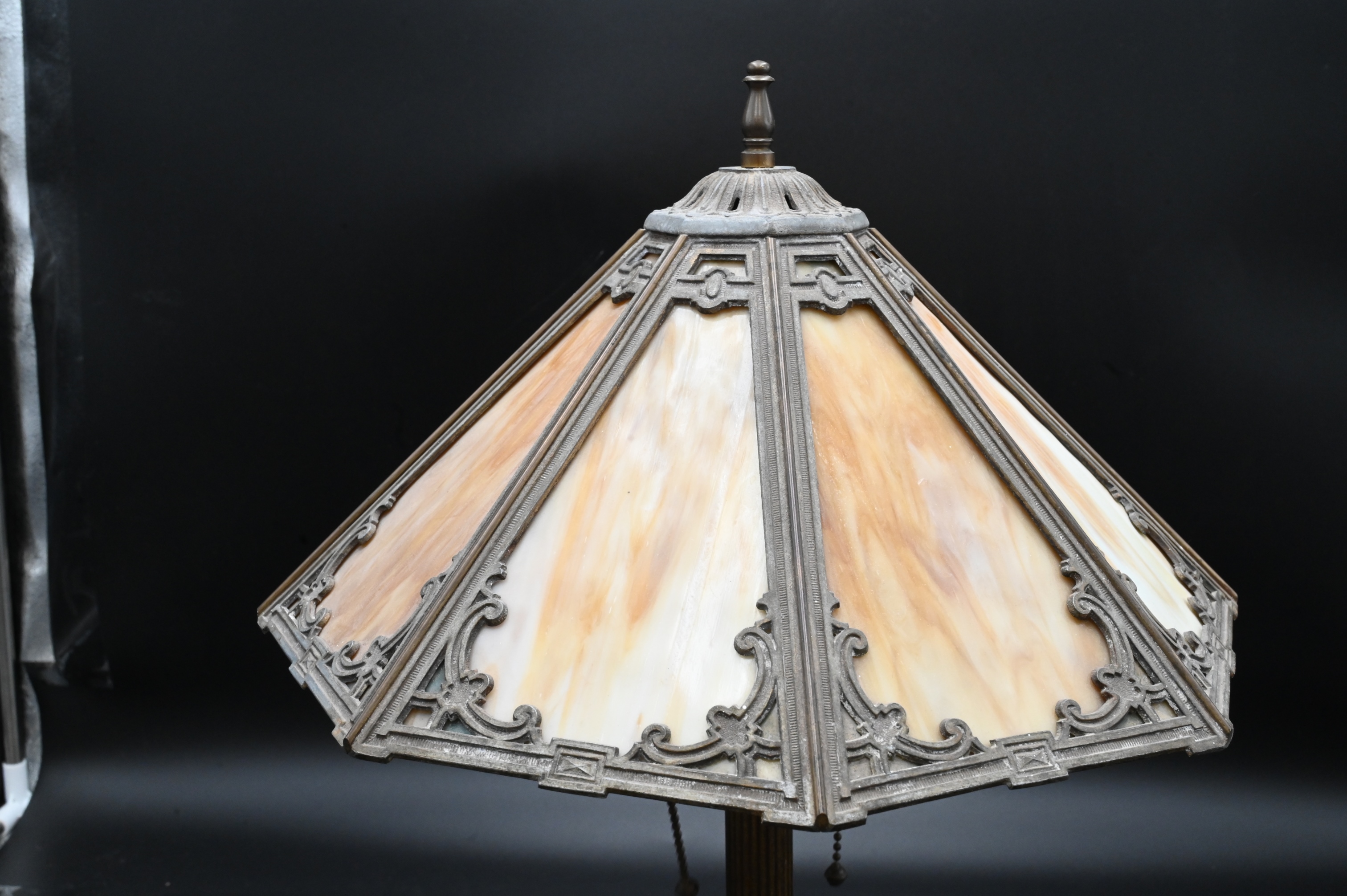 Slag Glass Table Lamp, height 19 inches, diameter 13 inches.