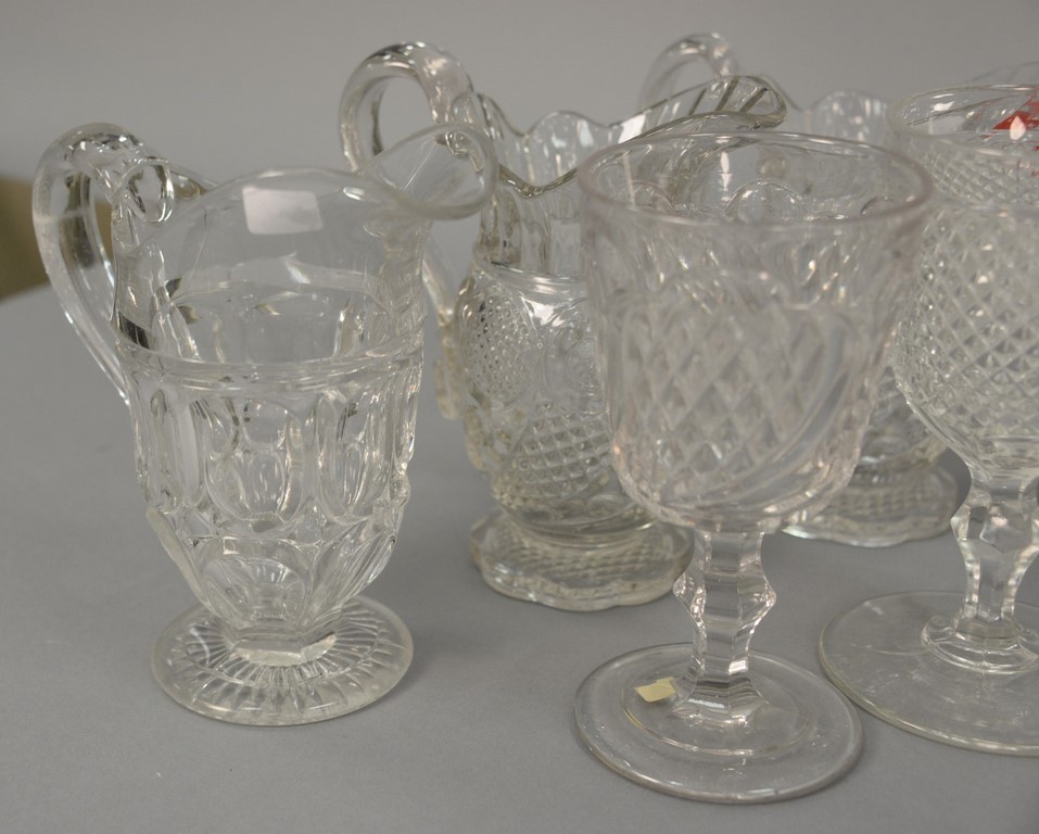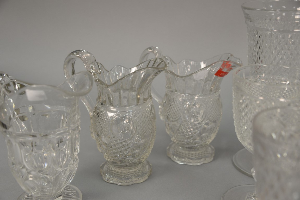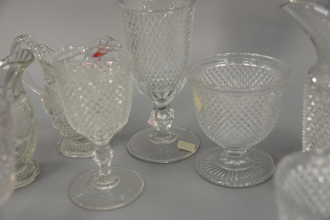 Thirteen piece group of pattern glass including nine pieces of diamond point creamers.