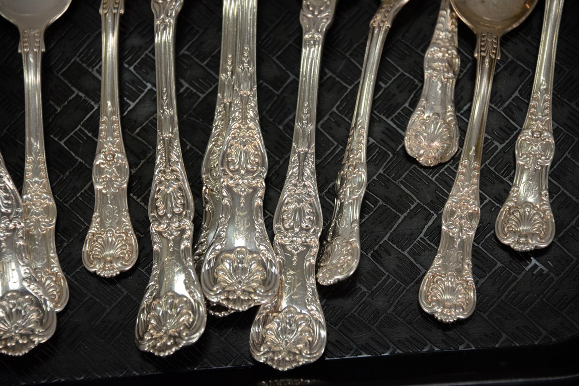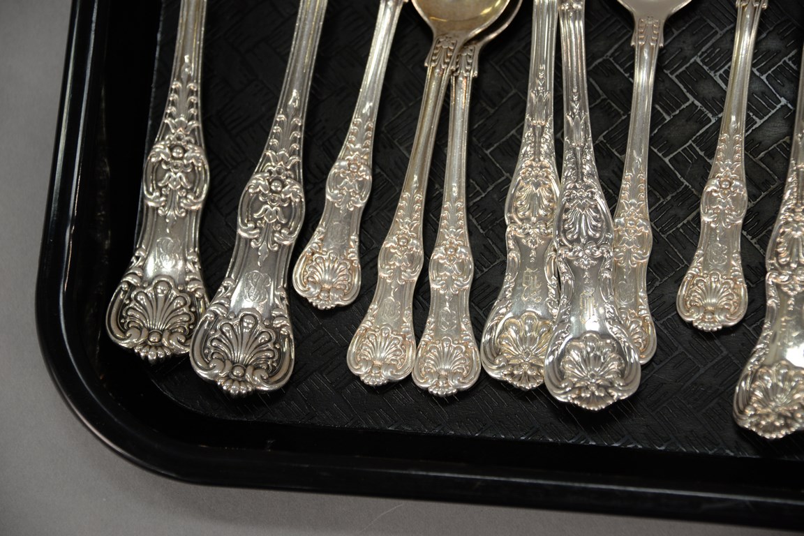 Lot 128: Tiffany and Gorham sterling silver lot including English King two tablespoons, and eight teaspoons 6 Gorham forks