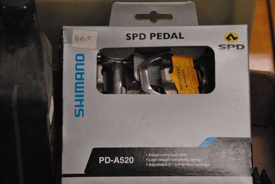 Two box lots of bike gear to include Shimano PD R540, Top Peak pumps, thermal gear tools, oil, etc., approximate retail price 300.00