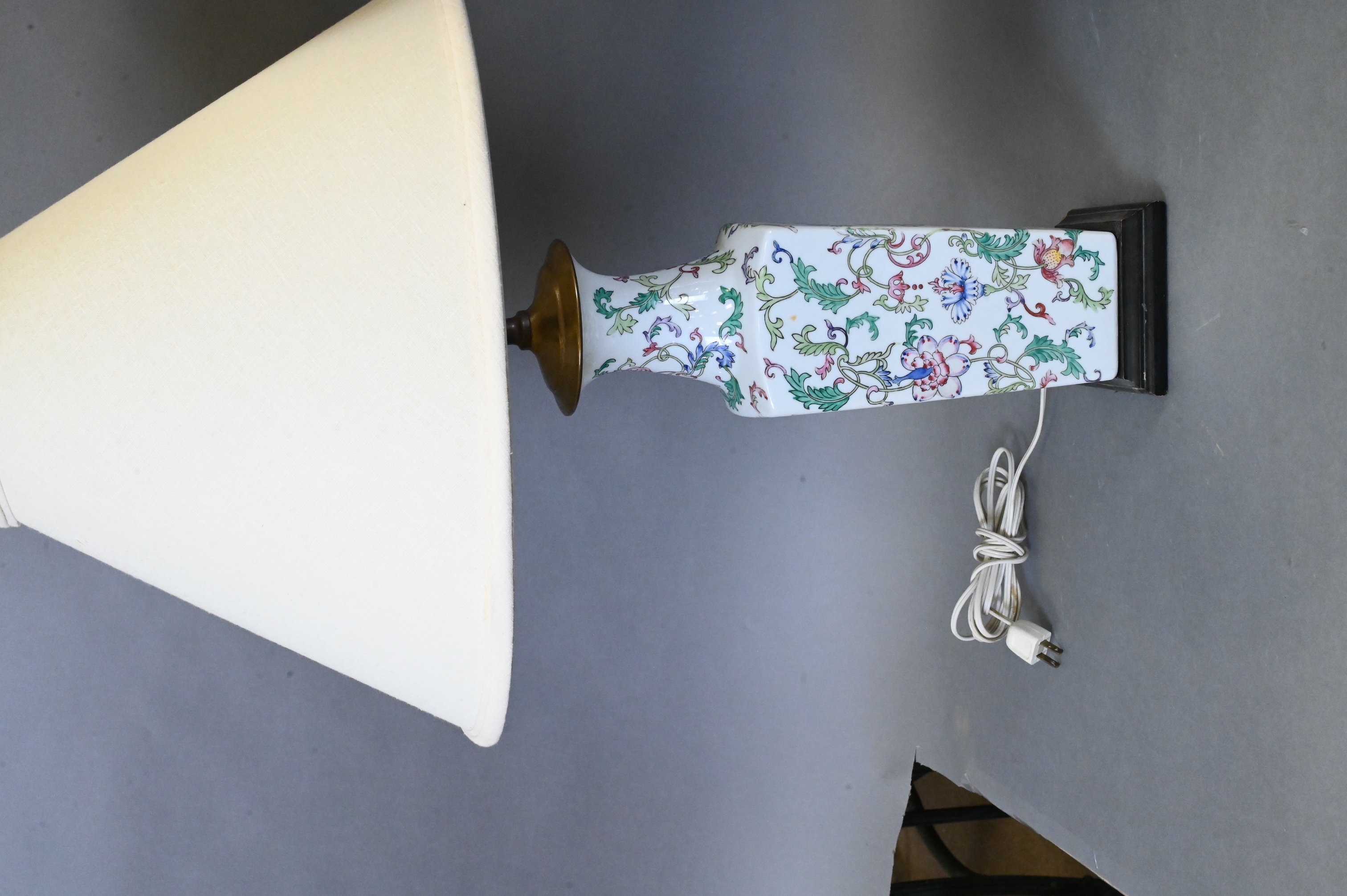 one of baluster form having bird on branches motif, one of tapering square form having scrolling vine and flower motif, both having gilt mounts